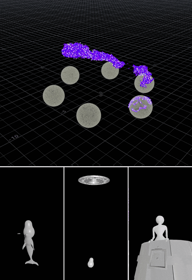 Неоновые искры, которые окутывают Матрёшку — результат сложной Гудини-симуляции, которая присутствует во всех сценах с преображением.