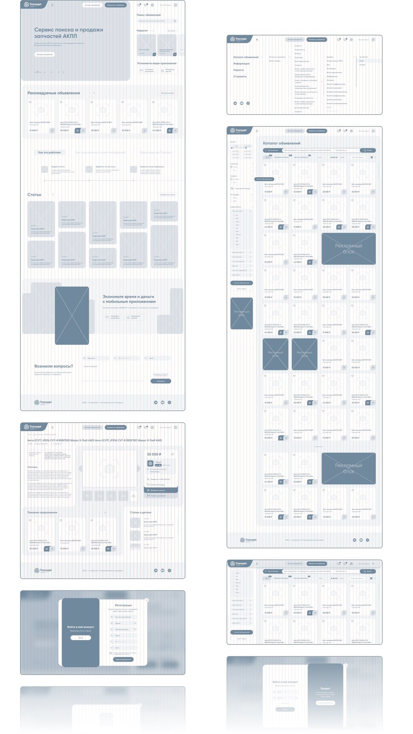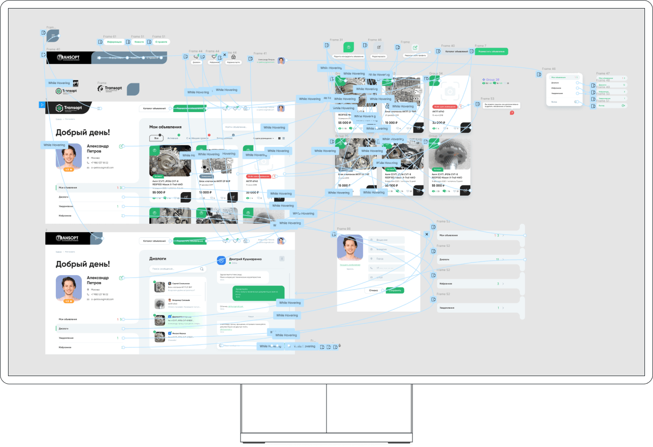 На основе дизайн-концепции была разработана структура и прототипы всех страниц сервиса, включая мобильные версии. На выходе получается логическая схема связи всех опций и страниц ресурса.