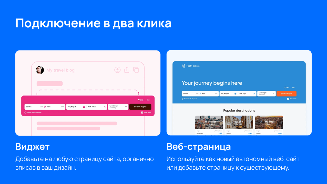 Travelpayouts получил обновленный продукт, соответствующий современным требованиям и ожиданиям пользователей: с актуальным интерфейсом, расширенной кастомизацией, улучшенной архитектурой, возможностью интеграции на любые сайты без ущерба стилю.