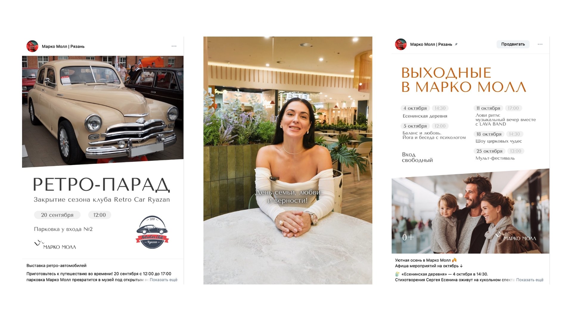 Регулярный и яркий контент о мероприятиях в соцсетях позволил значительно повысить посещаемость торгового центра. У аудитории сформировалась устойчивая ассоциация: выходные — мероприятие в “Марко Молл”.