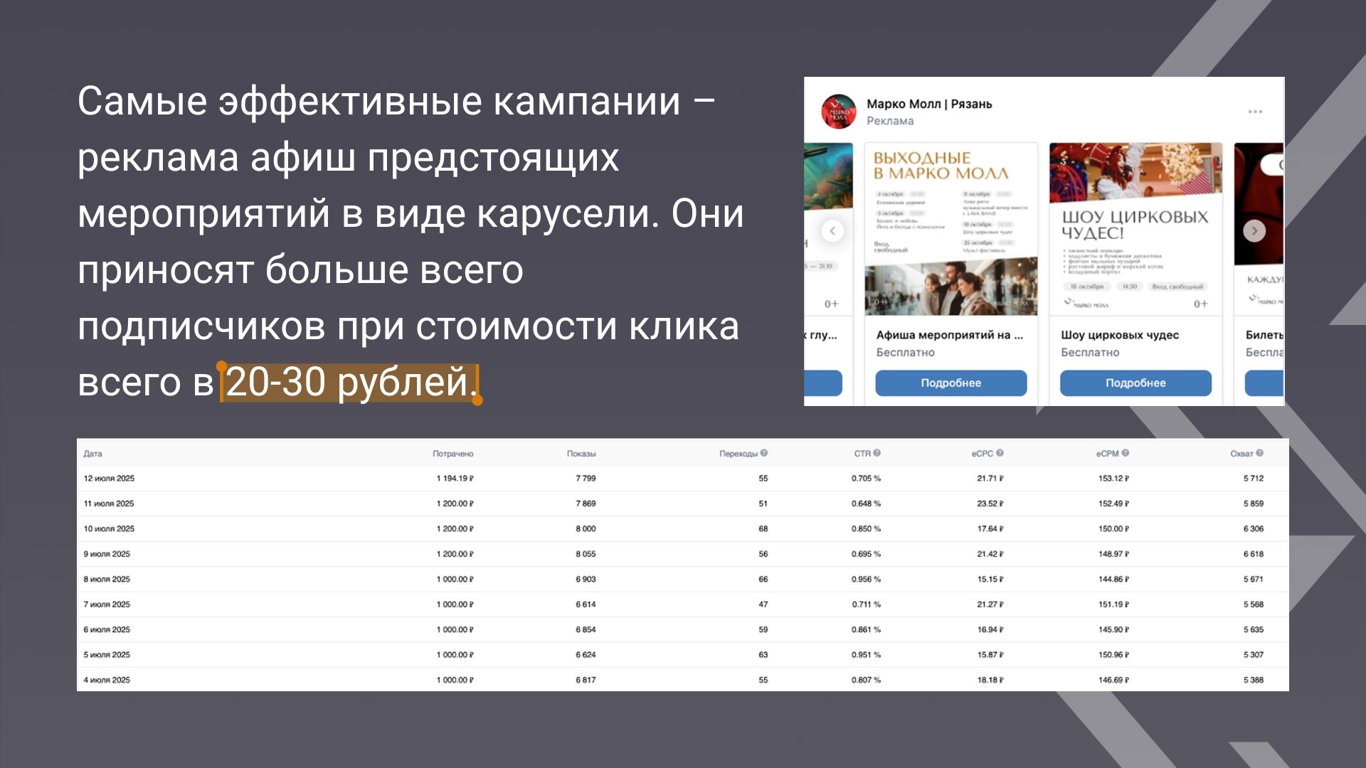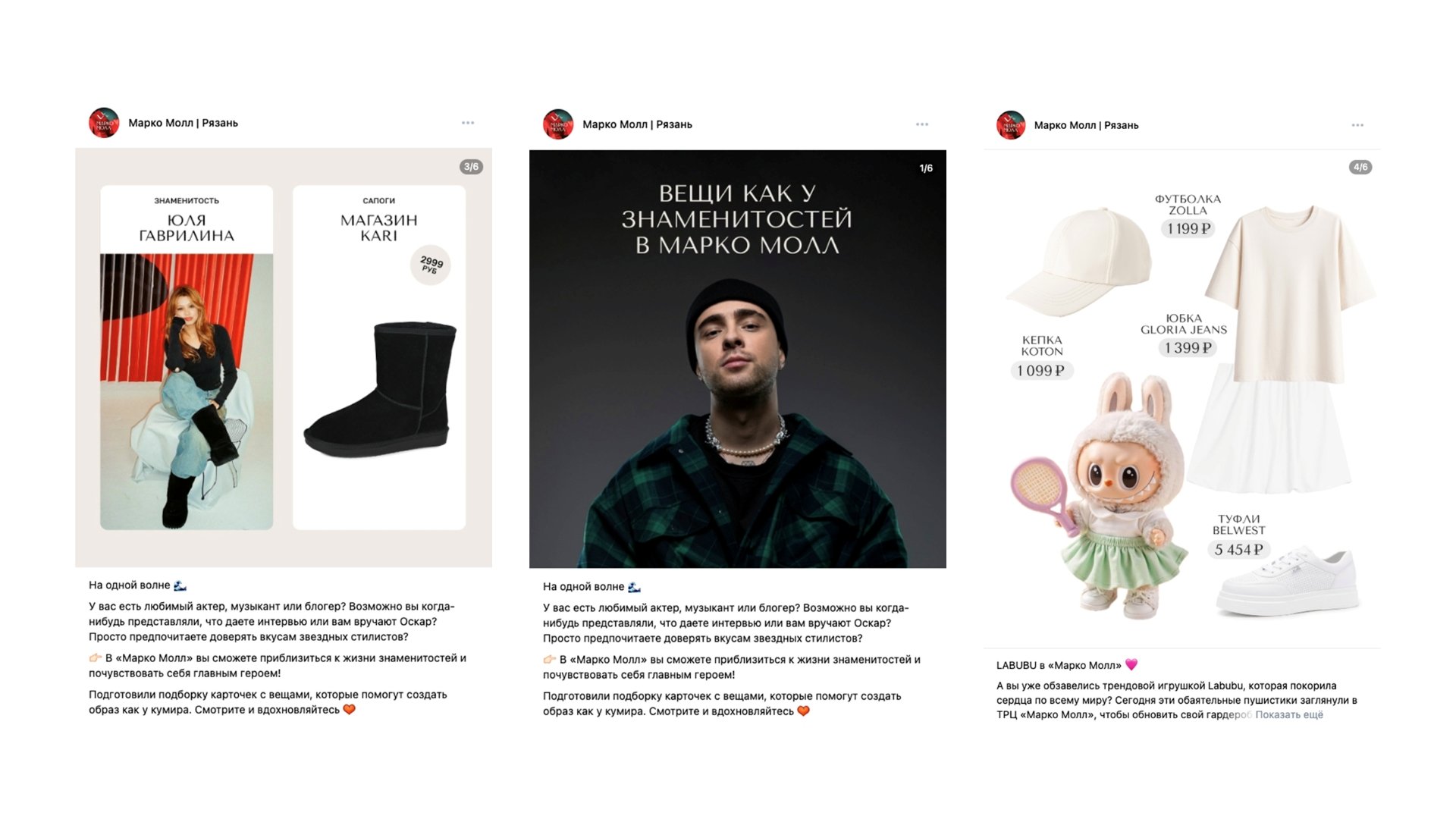 Совместные публикации помогают не только увеличить охват и привлечь новую аудиторию, но и формируют положительный имидж ТРЦ как места, где регулярно происходят интересные события, появляются новинки и создается уникальная атмосфера для всех возрастов.