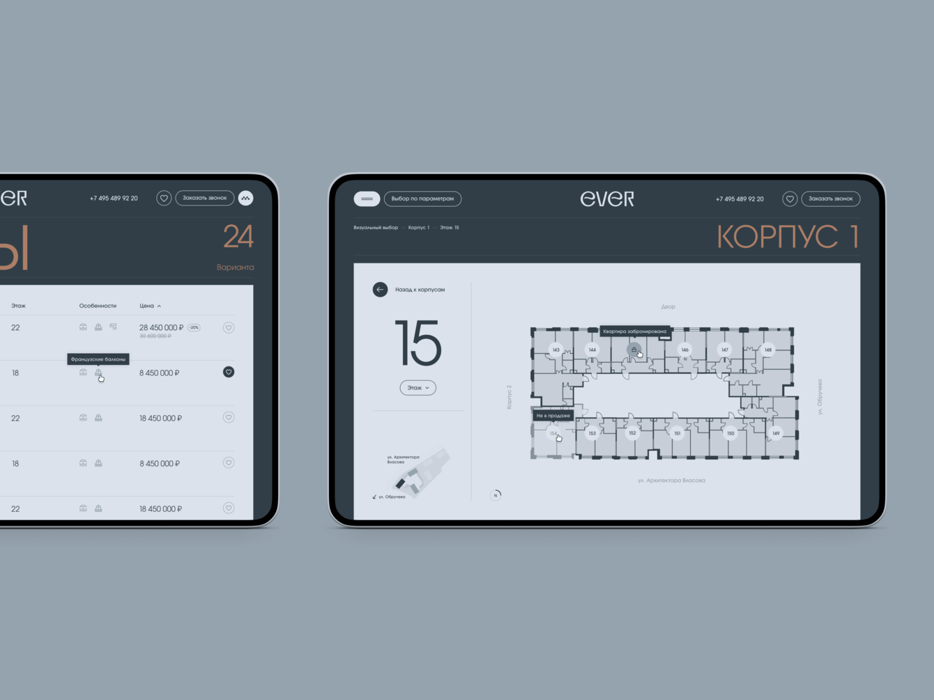 У нас большой опыт в создании уникальных промо-сайтов о недвижимости, поэтому мы глубоко понимаем этот рынок и ожидания потребителей. Мы структурировали сайт, руководствуясь принципами сторителлинга — так изучение ЖК EVER становится легким и увлекательным опытом.