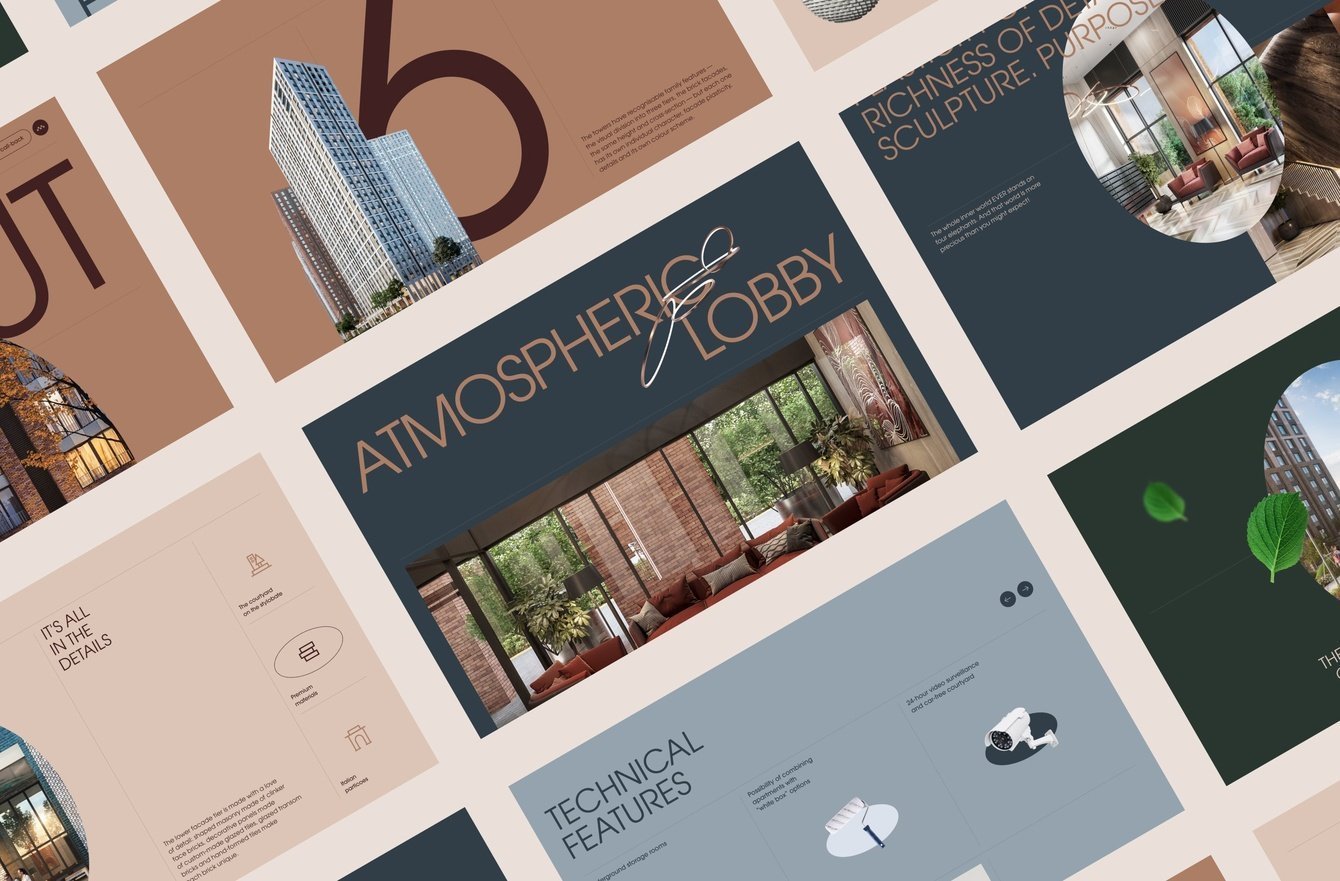 Сайт наполнен деталями, которые погружают пользователя в проект на чувственном уровне: формы, рифмующиеся с архитектурными элементами, наглядная демонстрация текстур.
