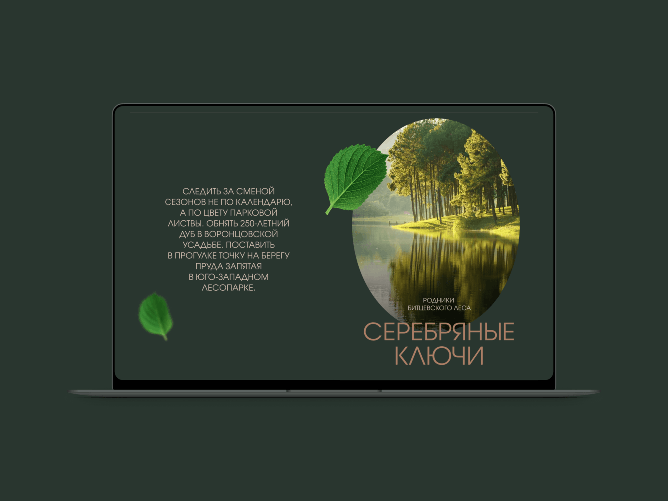 Начальный экран задает ключевую идею бренда — гармонию урбанизма и природы, мужского и женского, холодного и теплого. Нестандартная анимация сразу захватывает внимание пользователя.