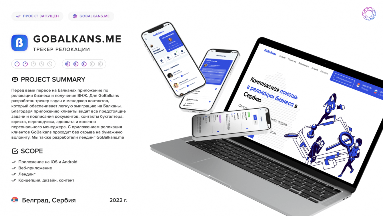 Взявшись за задачу, наша команда разработала пионерское приложение GoBalkans, первое в своем роде в этом регионе, служащее трекером для переезда и подачи заявления на визу. Мы сосредоточились на создании эффективной и удобной для пользователя платформы, которая могла бы оптимизировать процесс переезда.