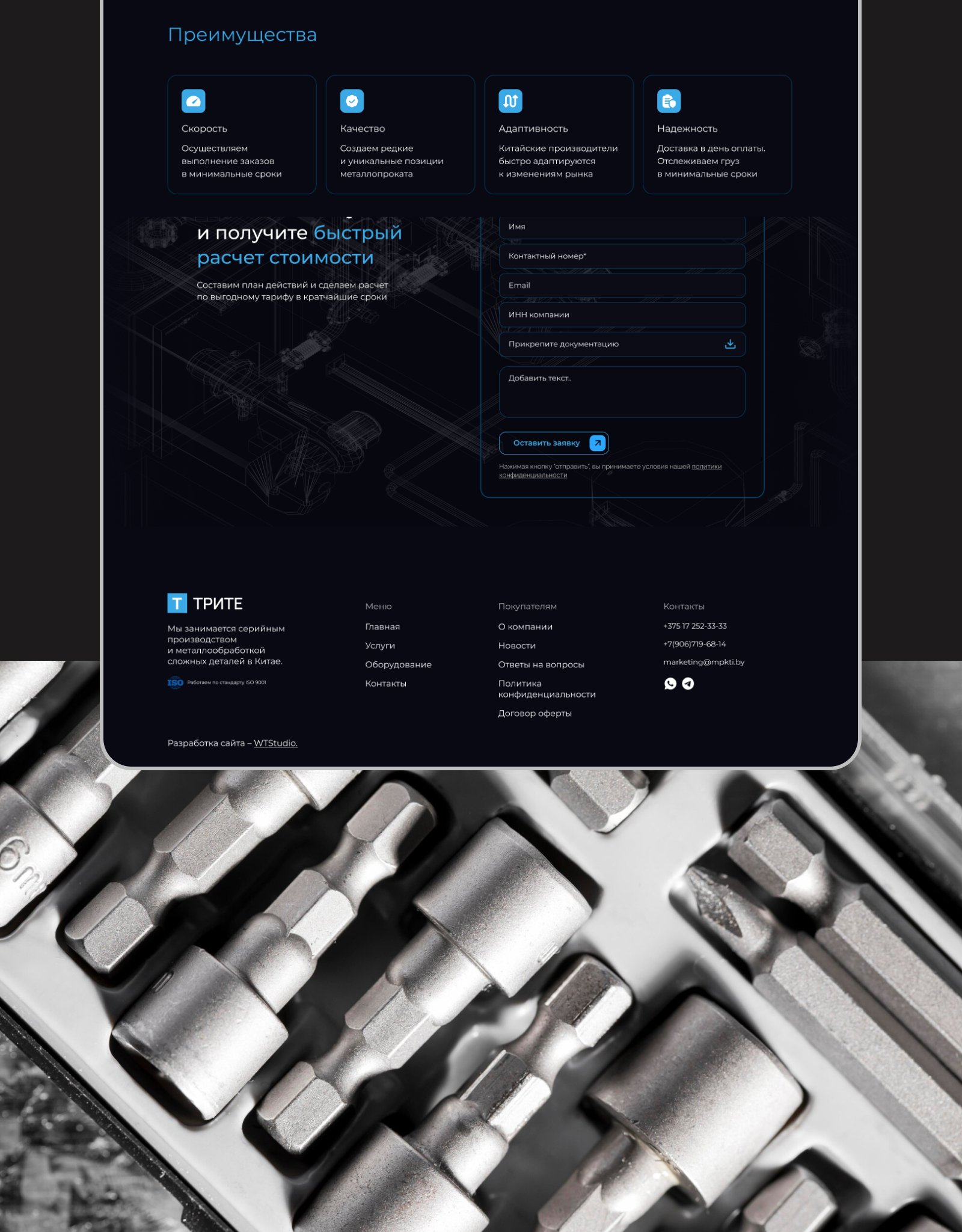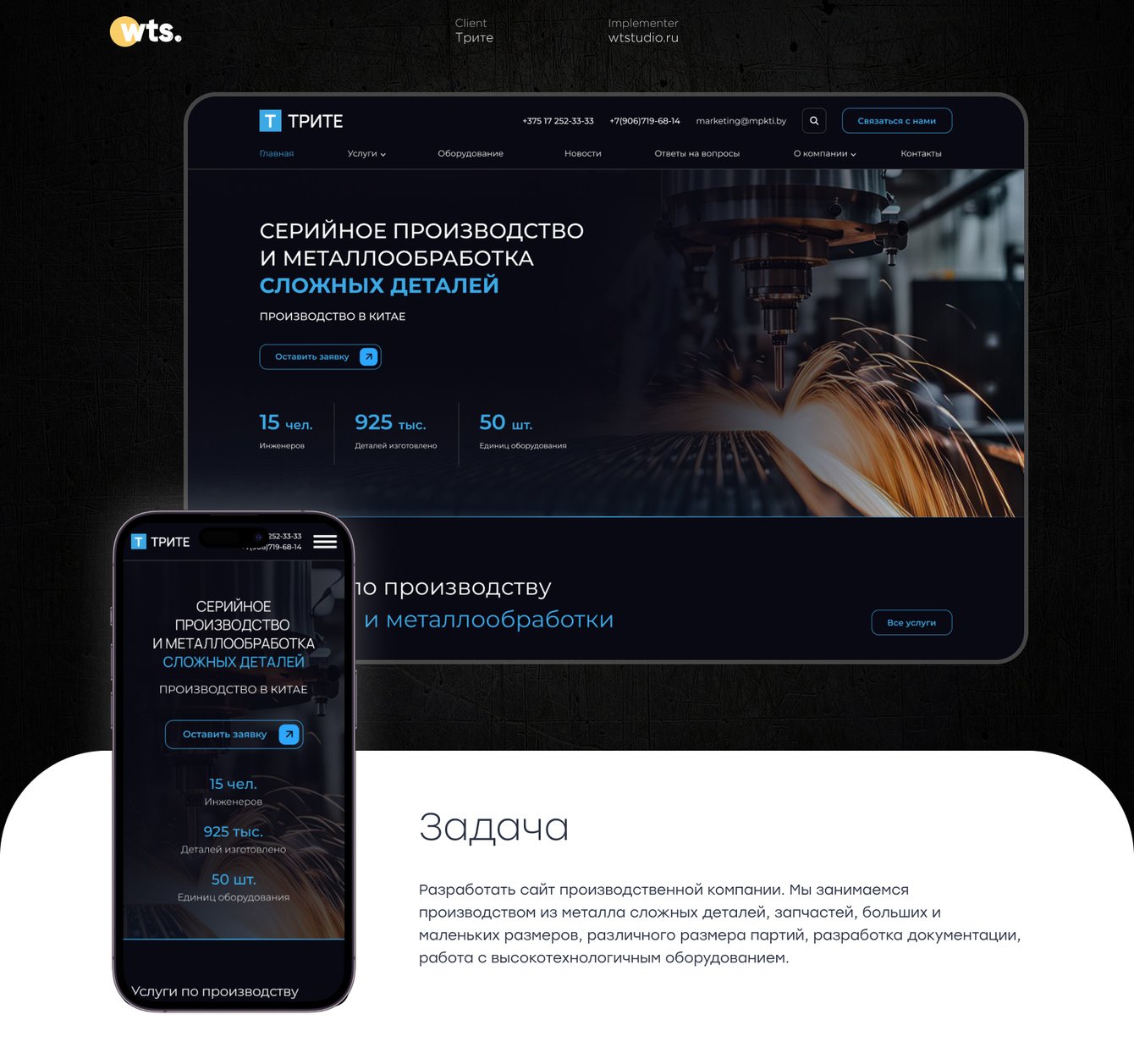Разработать сайт производственной компании. Мы занимаемся производством из металла сложных деталей, запчастей, больших и маленьких размеров, различного размера партий, разработка документации, работа с высокотехнологичным оборудованием.