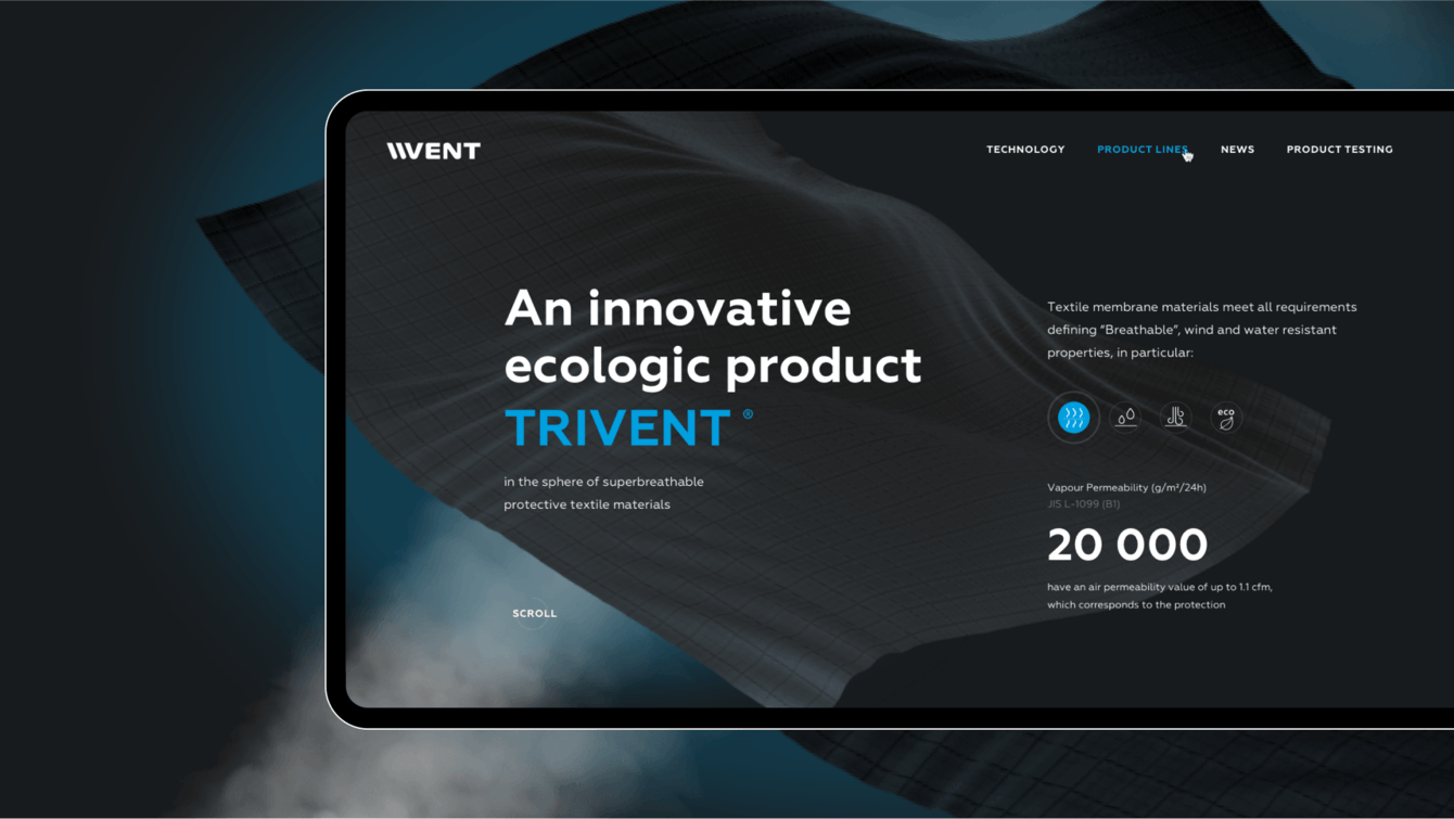 Trivent — инновационный продукт в сфере сверхдышащих защитных текстильных материалов. Уникальная мембрана из наноматериалов, использующаяся в производстве одежды, делает материал более экологичным относительно конкурентов, сохраняя при этом высокие качественные характеристики.
