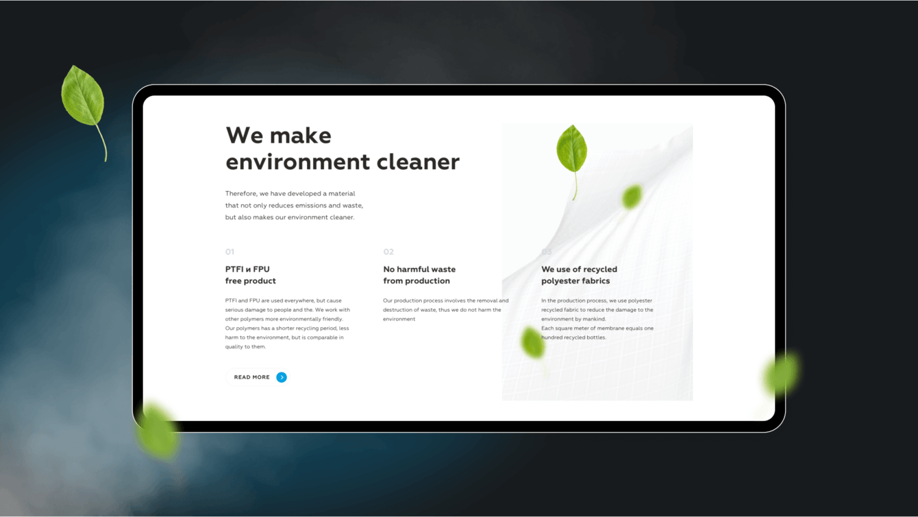 Разработать сайт, нацеленный на иностранный рынок, который станет связующим звеном для первичной презентации и максимально наглядно расскажет о преимуществах инновационной мембраны потенциальным заказчикам.