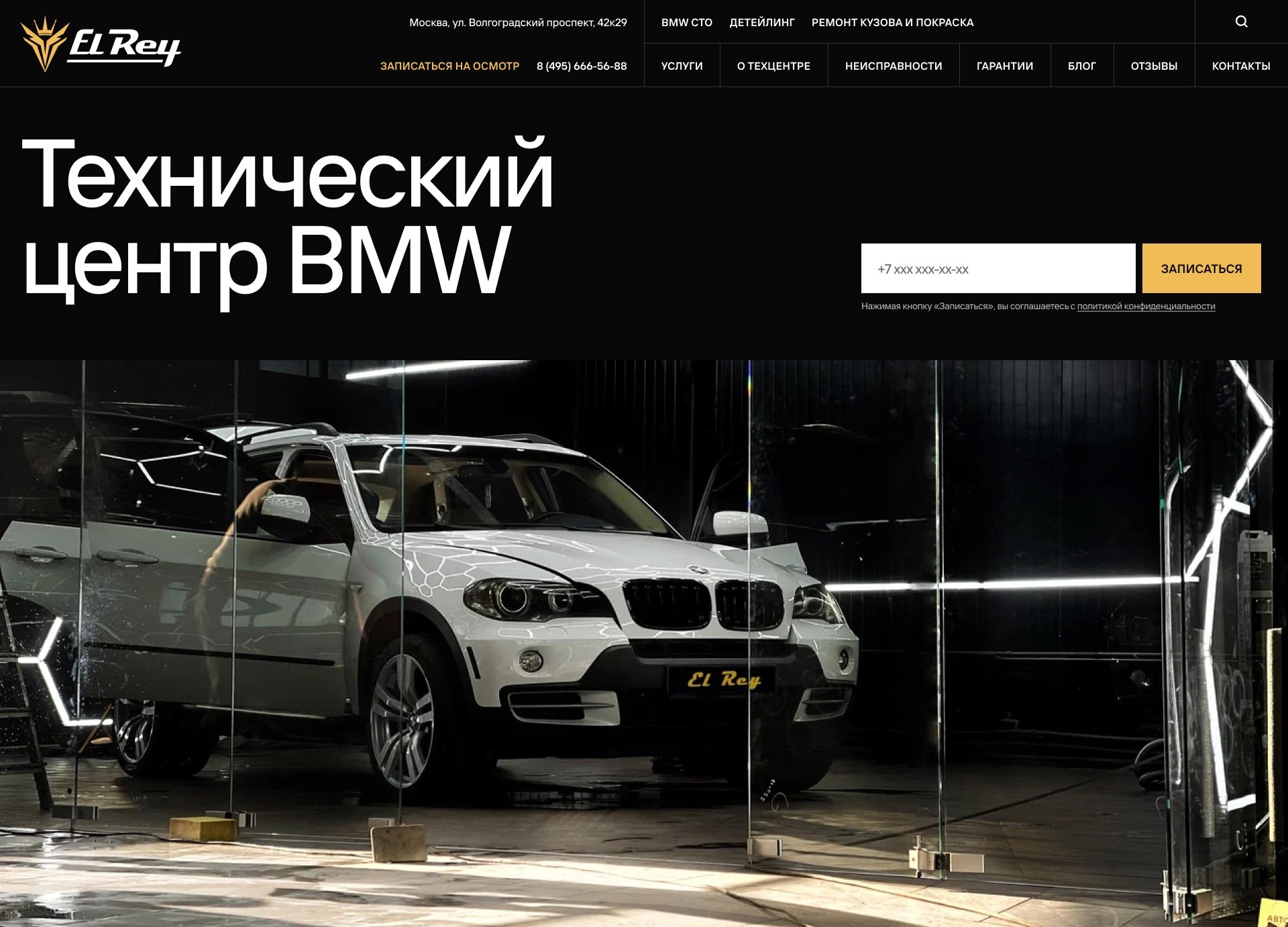 Общая дизайн концепция по сайтам — это через крупные фотографии и визуальные акценты показать качество и премиальность услуг: детейлинг, полировка, керамическая защита, химчистка салона. Так же как команда EL REY бережно очищаем автомобиль от малейших пылинок, дизайн выстроен чисто и минималистично: без лишнего визуального шума, с ясными акцентами и понятным путём пользователя.