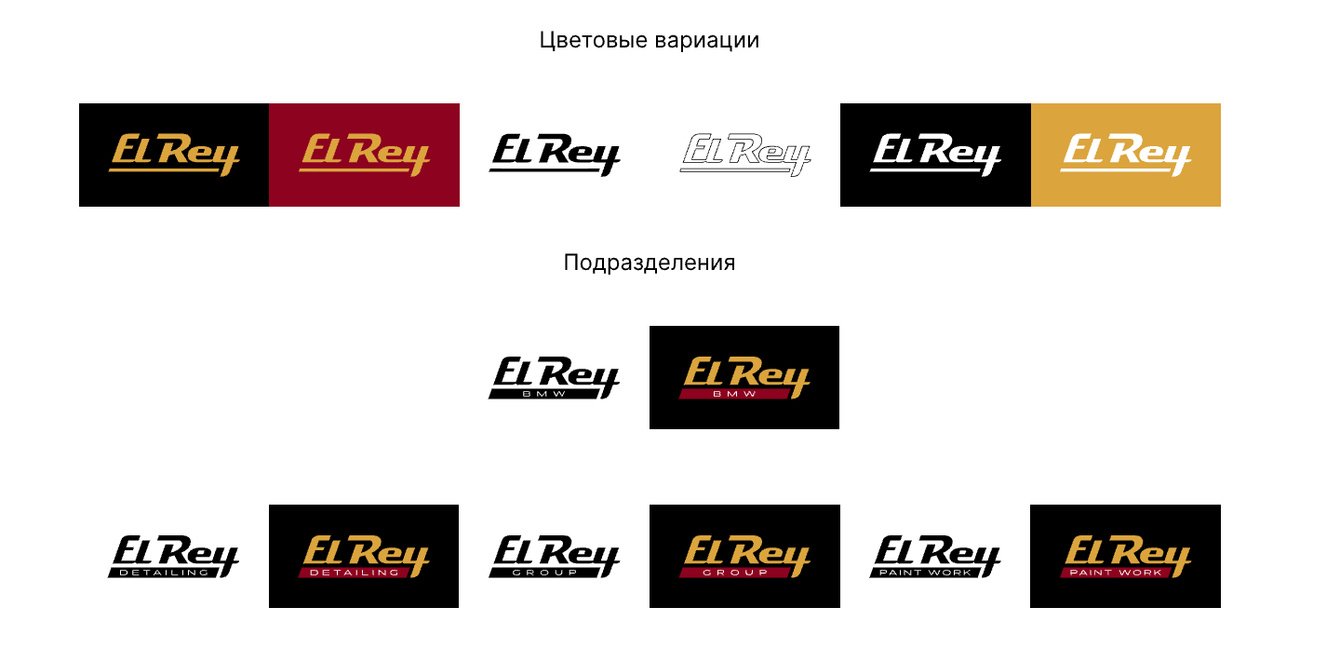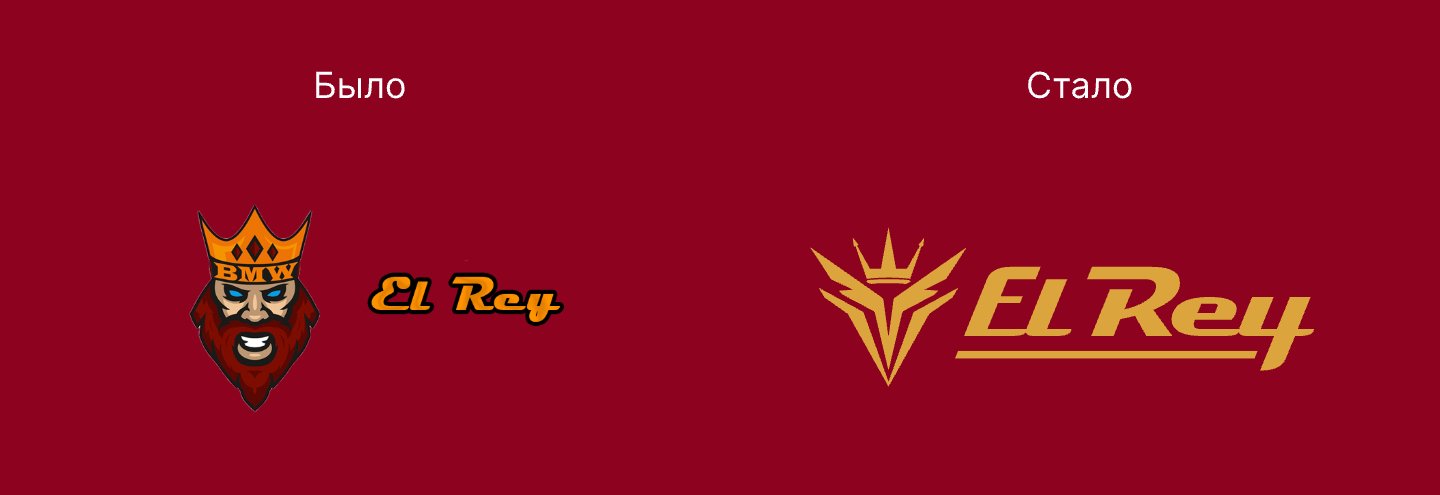 Элемент короны подчёркивает название El Rey, создаёт ассоциацию с премиальностью и лидерством. Шрифтовое решение с наклоном придаёт логотипу ощущение движения и энергии.