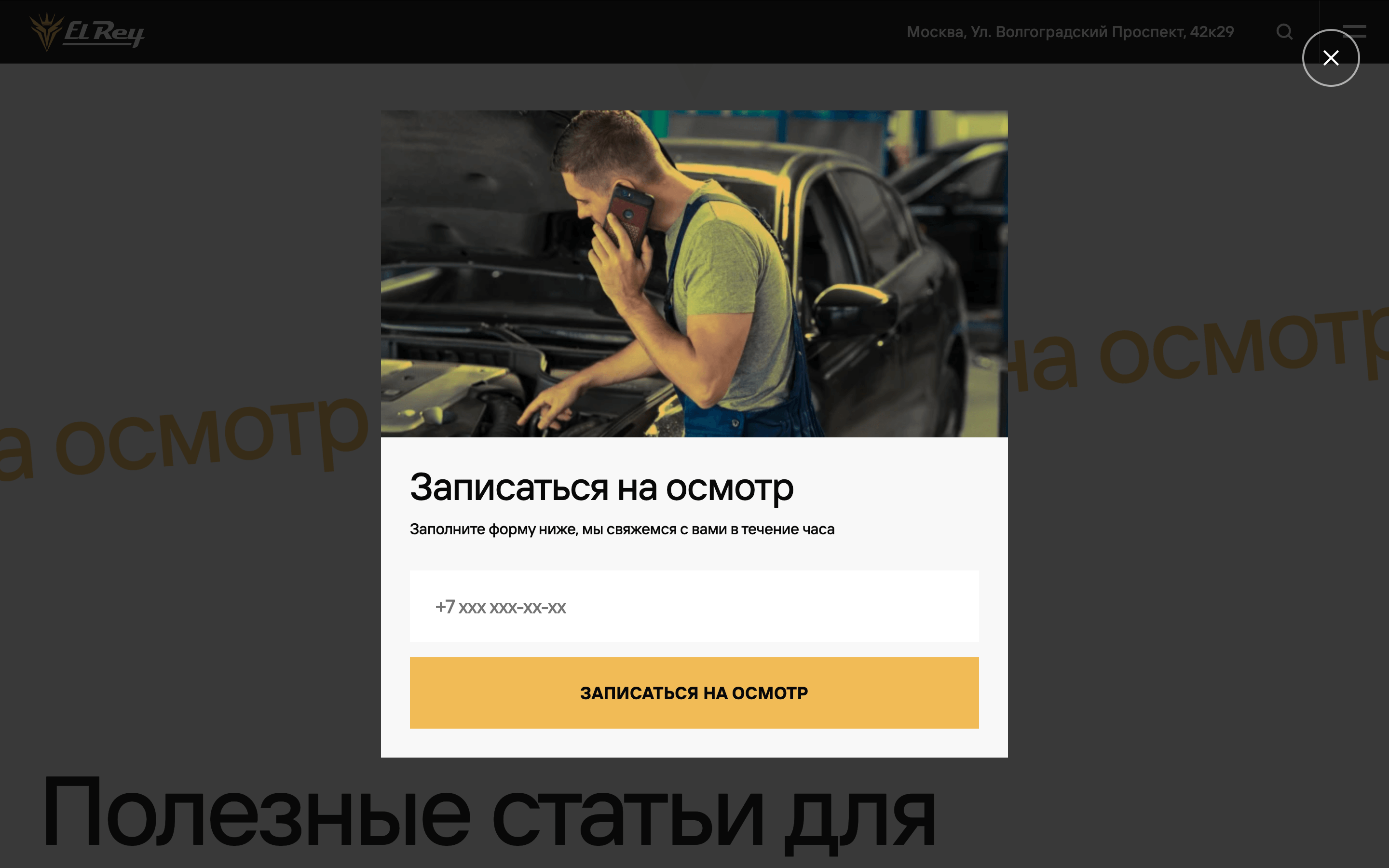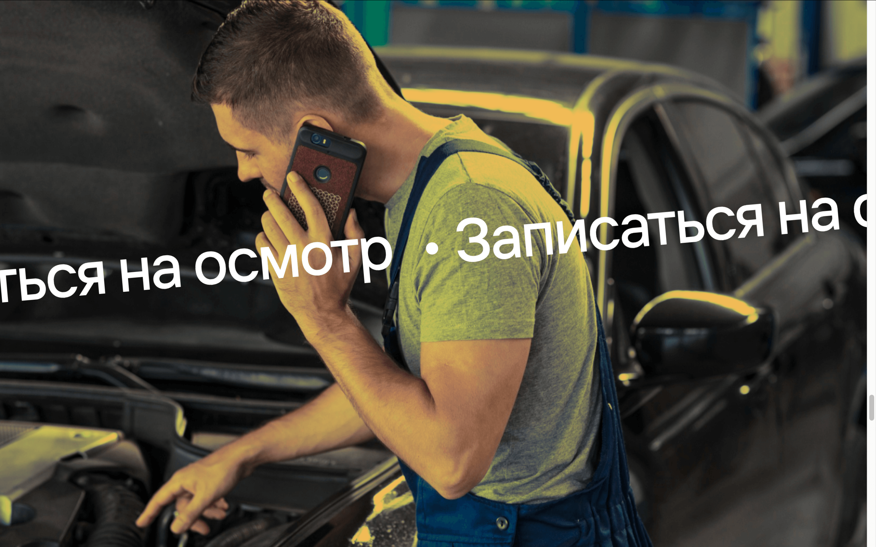 Чтобы усилить эффект, мы добавили интерактив. При скроле страницы текст раскрывал маленький сюрприз — появлялось изображение технического специалиста, который внимательно осматривает автомобиль. В итоге блок стал не просто элементом интерфейса, а маленьким акцентом, который добавляет энергии всей странице и мотивирует к действию.