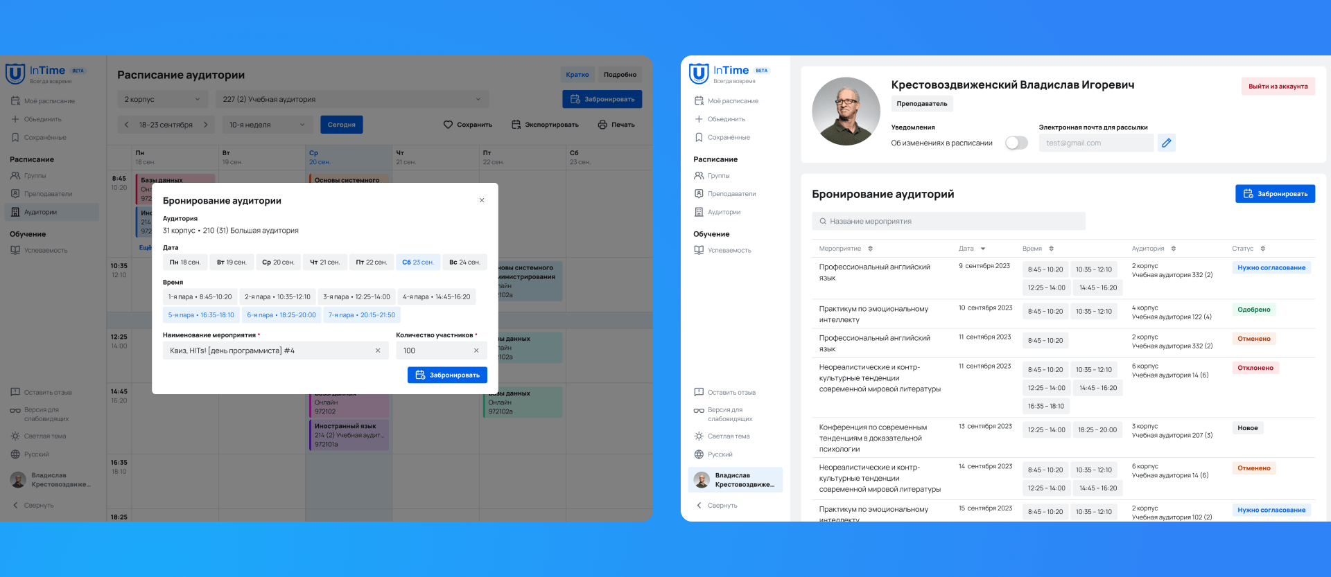 Данный этап превратил бронирование аудиторий из разрозненного процесса в управляемый продуктовый поток: прозрачно для преподавателей, предсказуемо для учебного управления и безопасно для академического расписания.