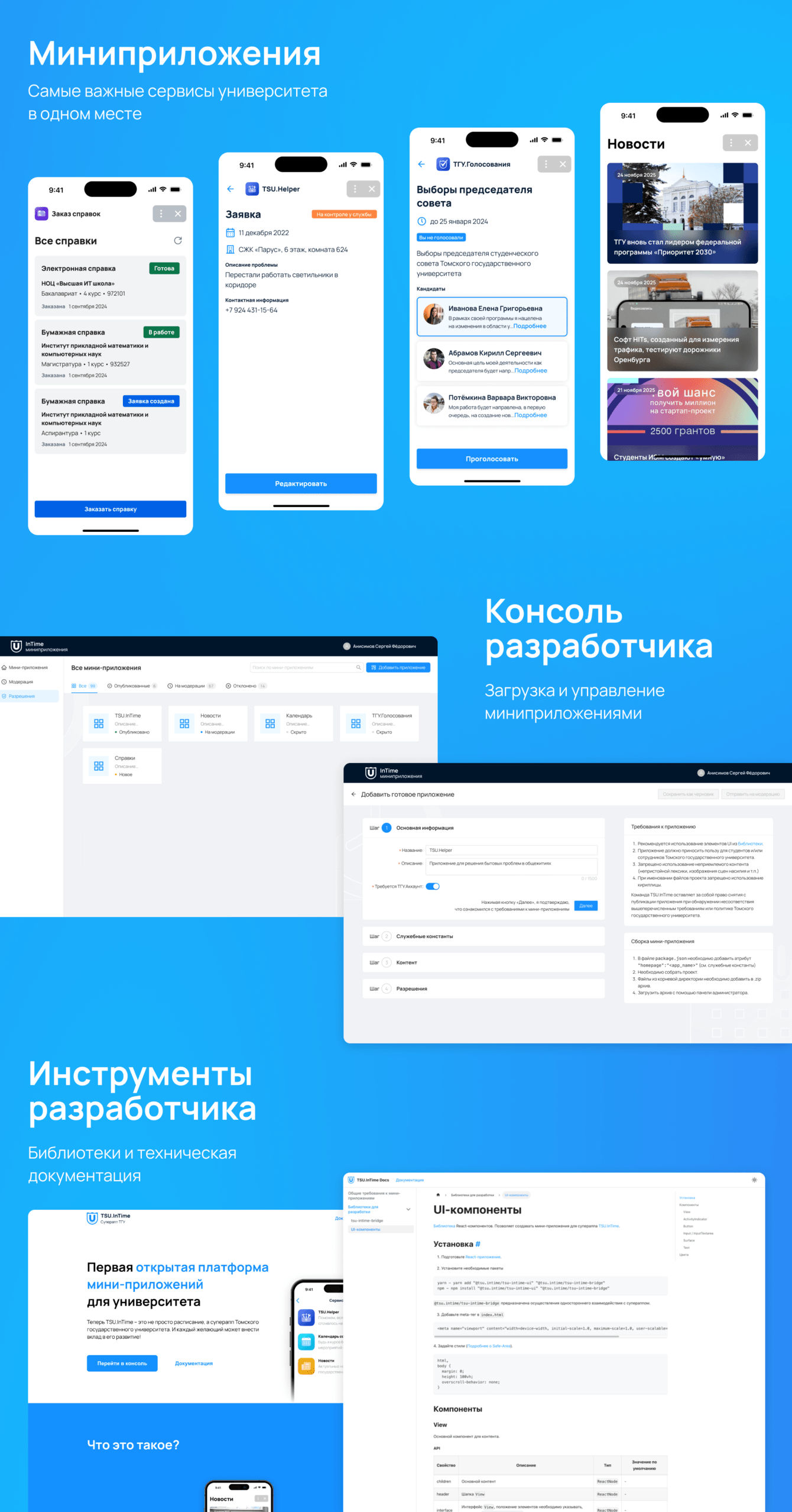 Мы подошли к задаче как к построению единой цифровой платформы, а не отдельного приложения. На базе первой версии приложений создали экосистему TSU.InTime, где все ключевые сервисы вуза доступны «из одного окна» на мобильных устройствах, а новые функции подключаются как миниприложения без перегрузки основной кодовой базы.