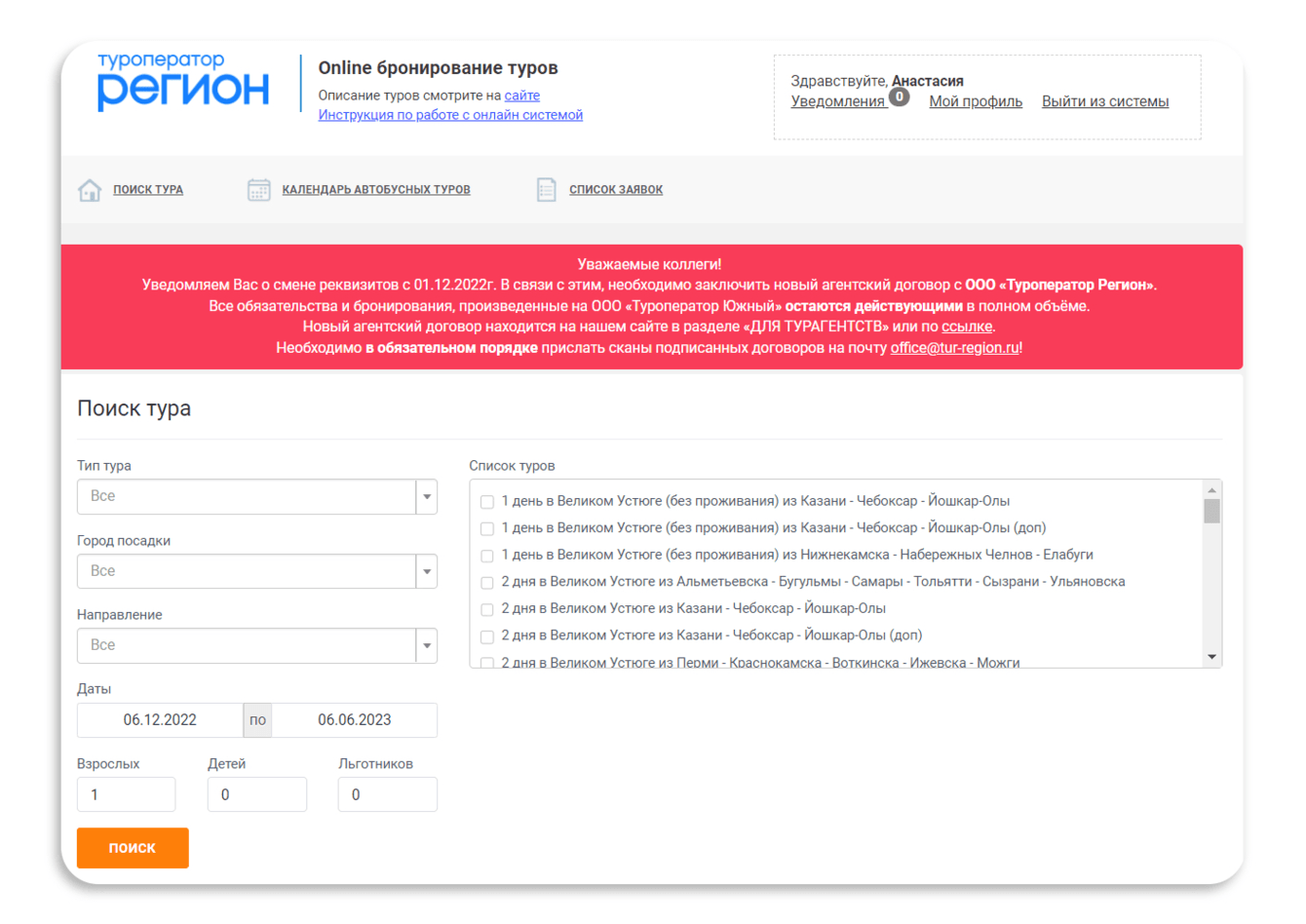 Многие туроператоры, в том числе “Регион”, использовали Мастер Тур от Мегатек для регистрации заявок, но в нем было проблематично зарегистрировать тур на физлицо. Нам надо было сделать так, чтобы физлица могли забронировать тур за 1,5–2 минуты. Для этого мы сделали небольшой модуль, который интегрировался с системой Мастер Тур — форму, которая передавала все данные по бронированию в систему.