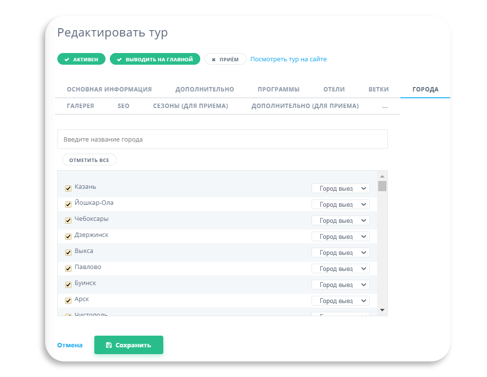И другие возможности. Например, подписание договоров через ЭЦП, интеграция с 1С, передача данных в Ростуризм, шаблоны документов и так далее.