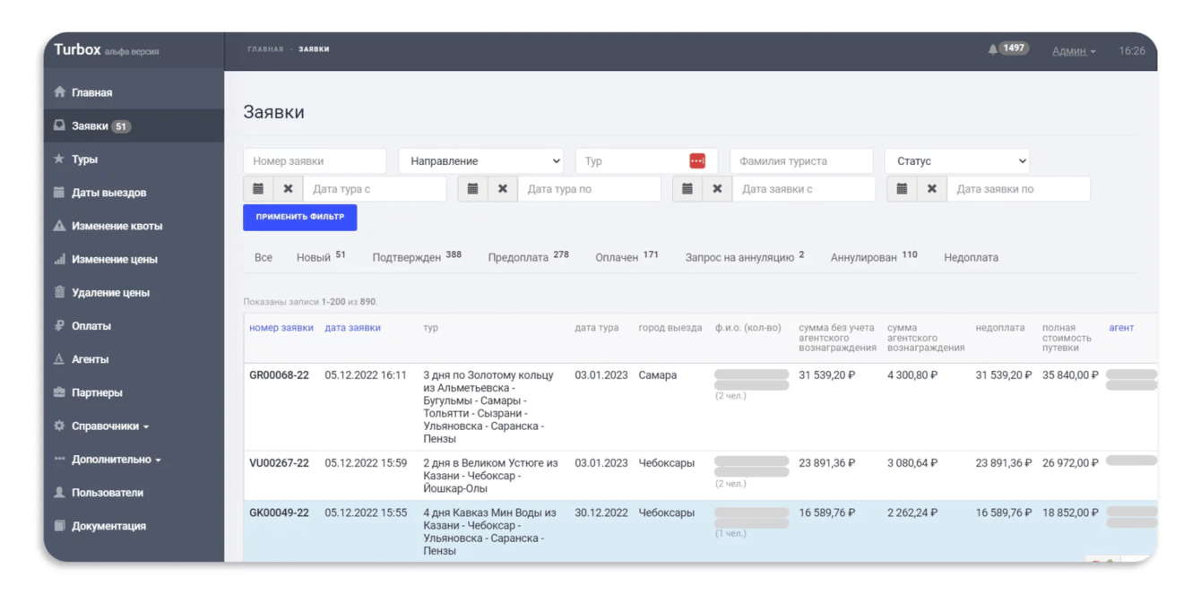 - Личный кабинет агента. Турагенты могут зарегистрироваться на нашем портале и бронировать своих туристов. Всё это занимает 3-5 минут, как если бы турист бронировал самостоятельно. Заявки сразу падают к нам, и в конце дня мы можем видеть в календаре количество туристов, от какого агентства они пришли, оплачено или нет.