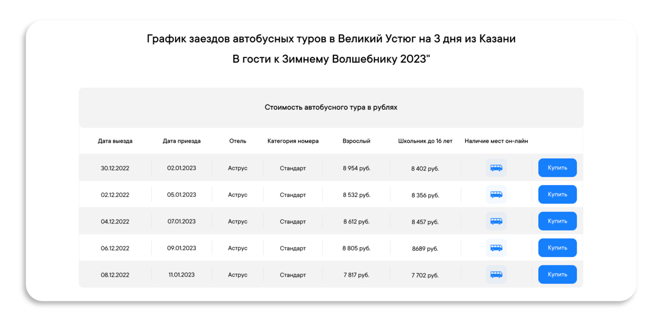 Нам нужен был трафик из 16 городов, поэтому сделали мультисайт, на котором было много SEO-страниц на каждый город и на каждый тур. В итоге за год трафик вырос в 4-5 раз. Если изначально сайт посещало 30 тысяч человек в год из поиска, то стало 140 тысяч человек.