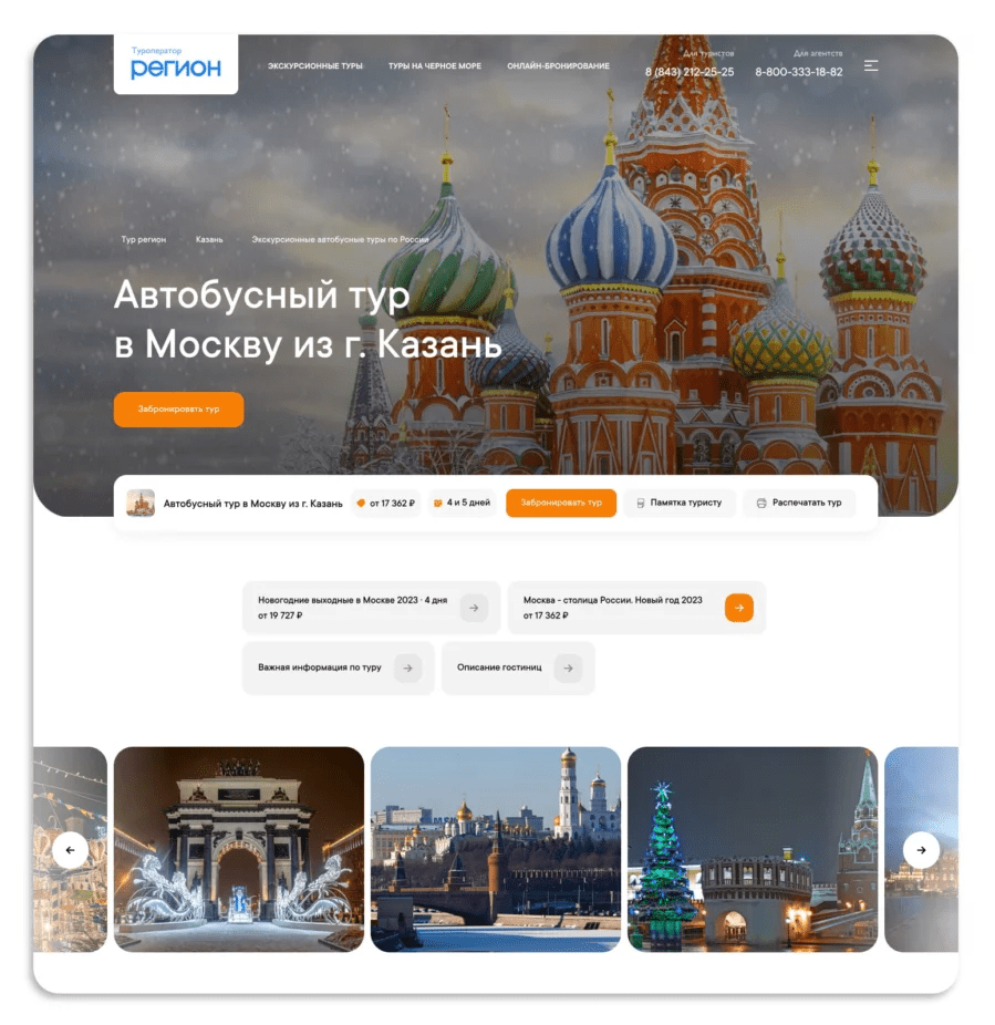 С компанией «Регион» мы работаем с 2014 года. Они занимаются автобусными турами из 18 регионов и 62 городов России.