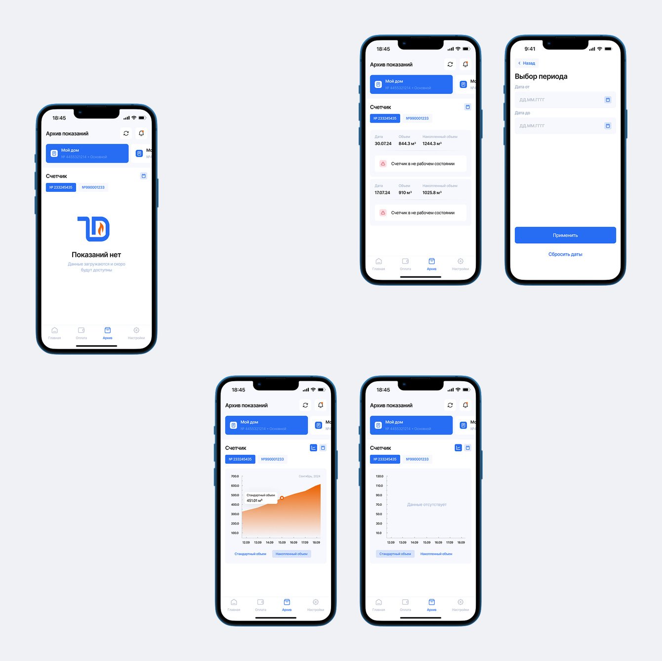 Реализован мониторинг потребления для выявления аномалий в показаниях счетчиков: визуализация расходов газа в виде графиков и диаграмм, накопительная статистика потребления ресурсов.