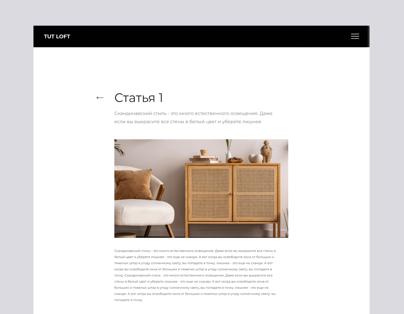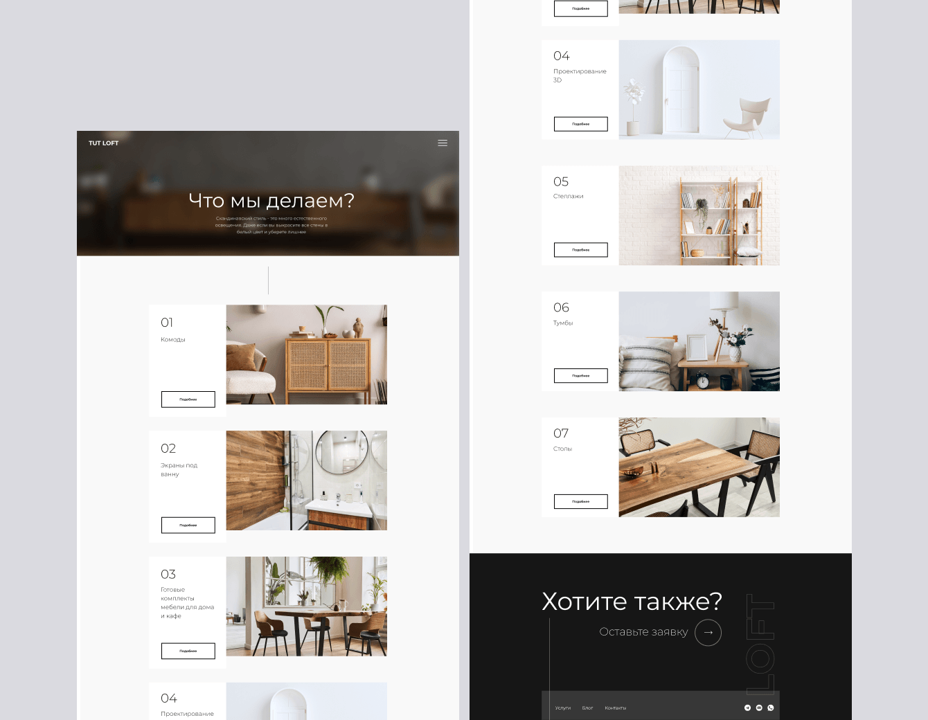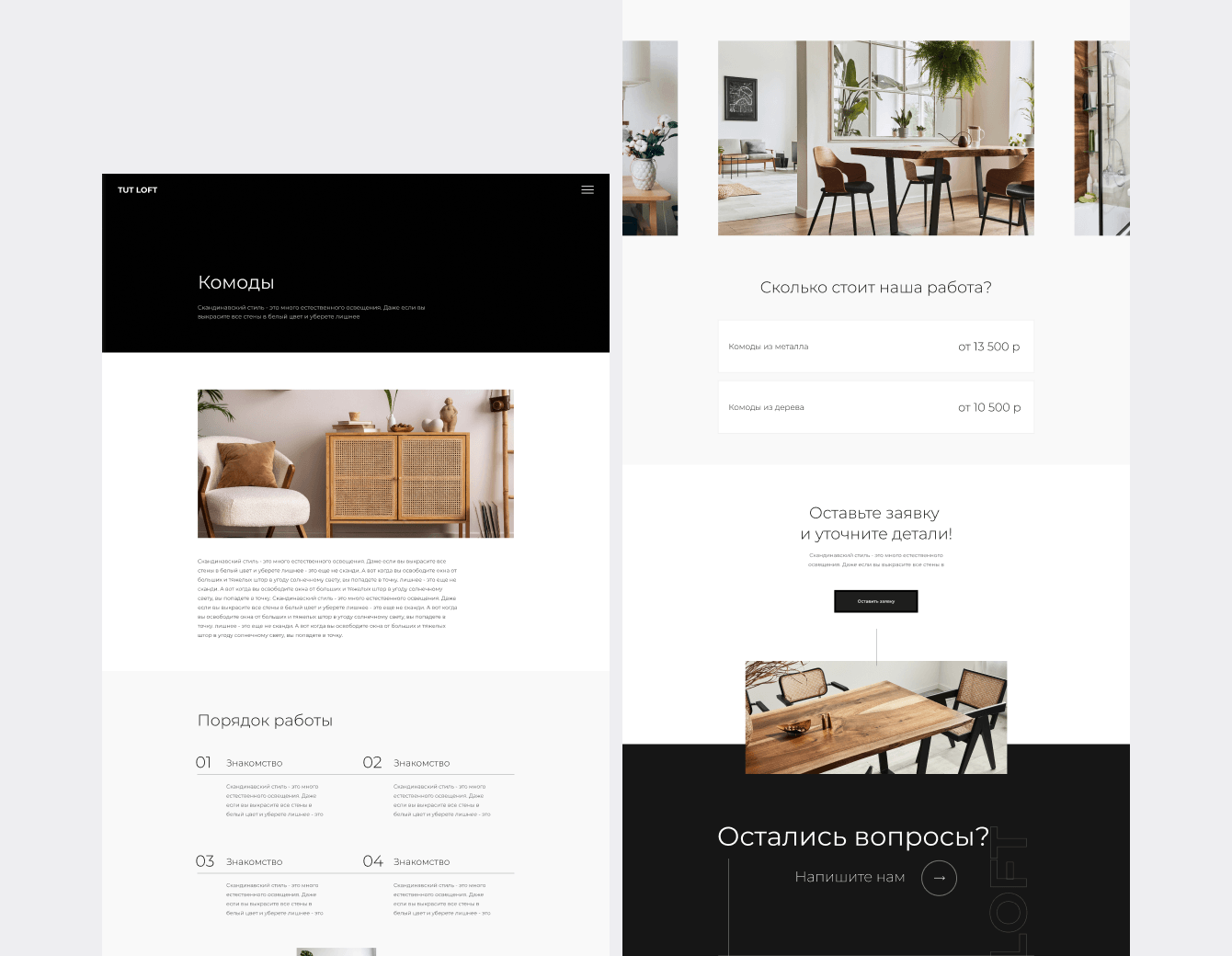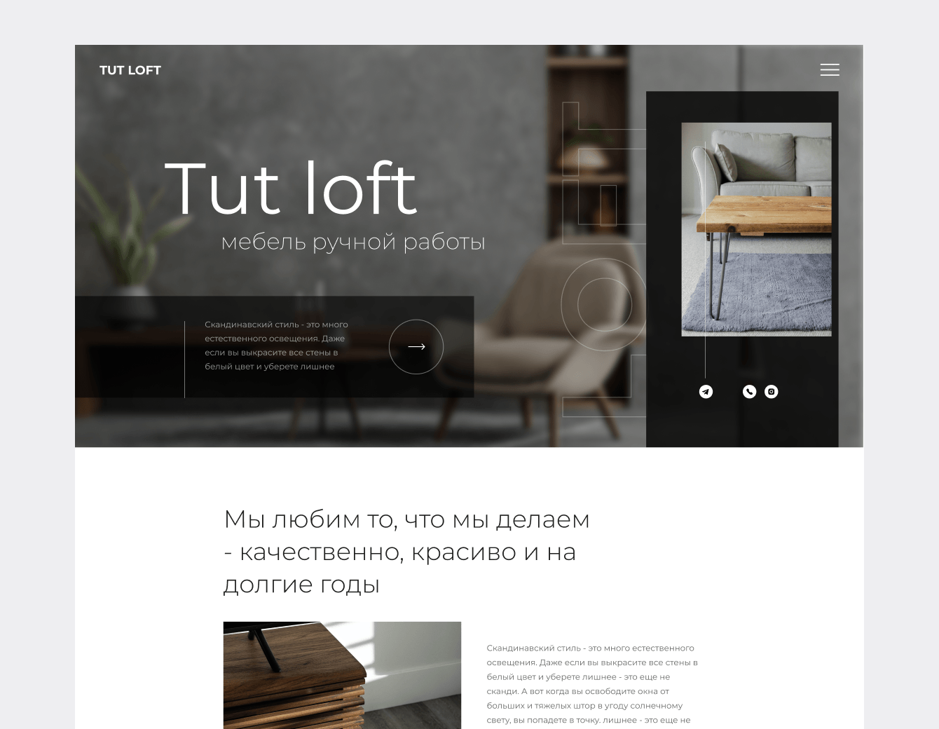 Задача: Создать сайт, отражающий уникальность изготовленной мебели.