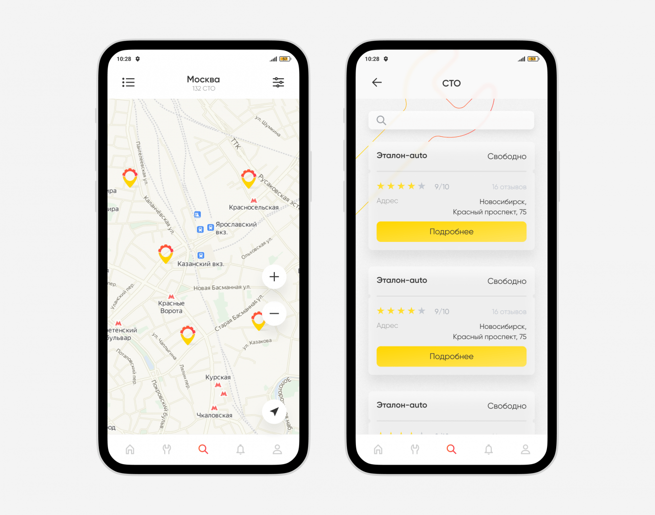 Так как главная цель этого приложения — поиск и бронирование сервиса техобслуживания, не обошлось без интеграции карт. Для этого выбрали Яндекс.Карты. Процесс интеграции с картами оказался сложным и трудозатратным.