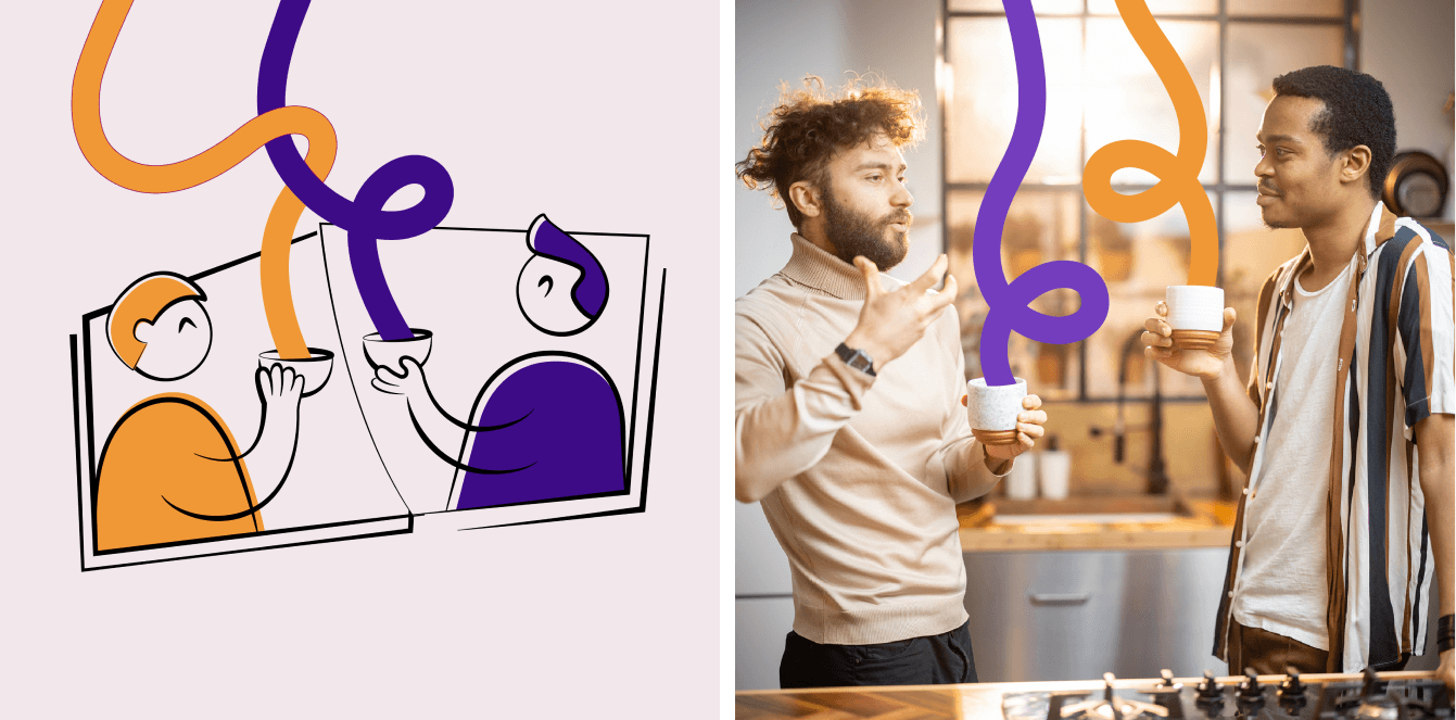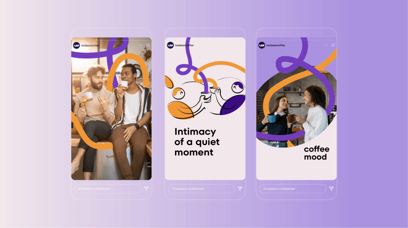 Добавили иллюстрации, которые еще больше подчеркнули нашу метафору о том, что кофе объединяет.