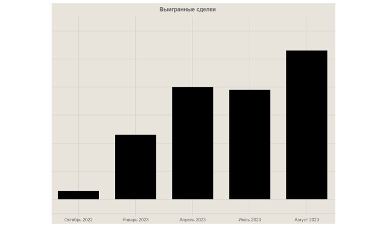 Самое интересное - выручка от выигранных сделок. Конкретные суммы мы вам сказать, конечно, не можем, но динамику покажем.