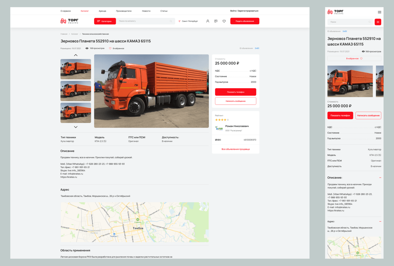 «ТоргРесурс» — cервис продажи и аренды сельскохозяйственной техники. Бесплатная регистрация для компаний, удобная подача объявлений, продуманный лк и обсуждение сделок во внутреннем чате.