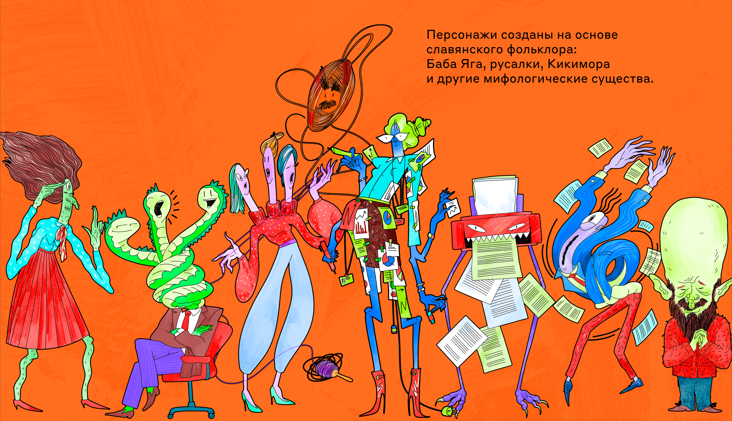 Персонажи созданы на основе славянского фольклора: Баба Яга, русалки, Кикимора и другие мифологические существа