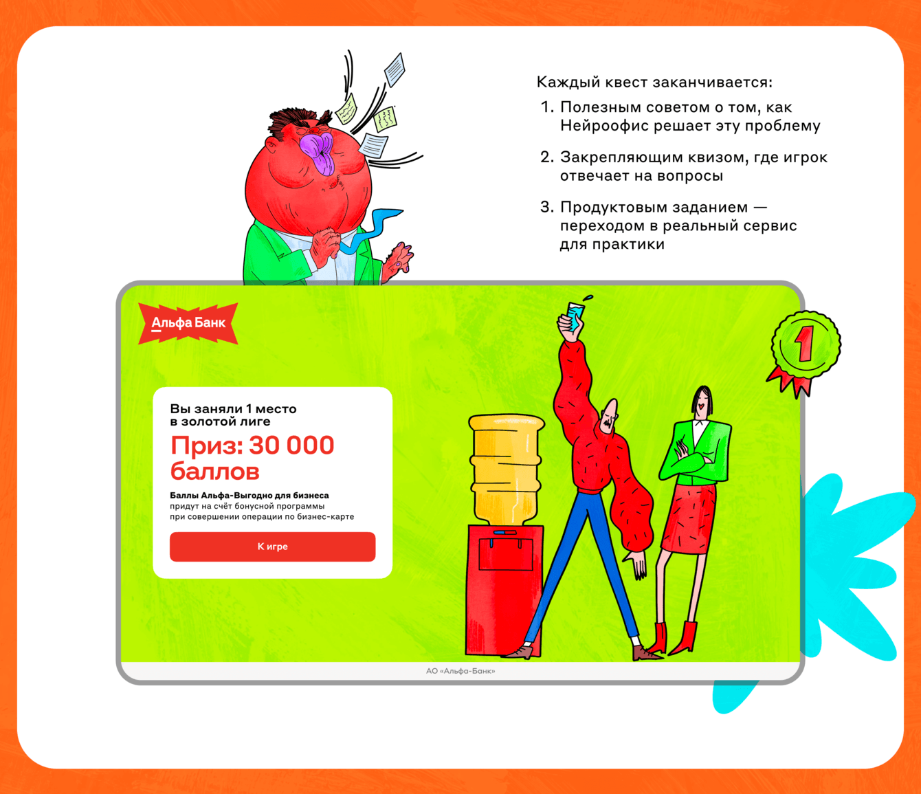 2. Закрепляющим квизом, где игрок отвечает на вопросы