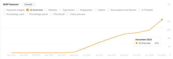 Использование ИИ-текстов способствовало также росту цитирований сайта в AI-ответах Google.