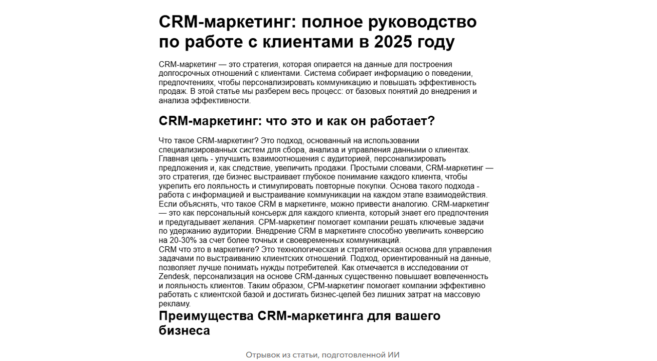 Еще раз повторим: да, это не идеальная статья, эксперт напишет намного лучше. Но как типовая SEO-статья — вполне приемлемо!