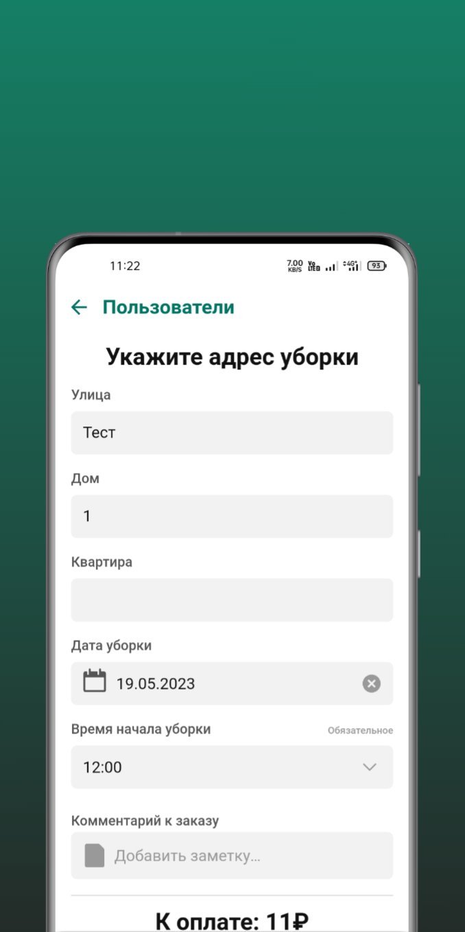 Создал мобильное приложение для клининга, с возможностью оплаты через приложение. Подключение сторонних сервисов