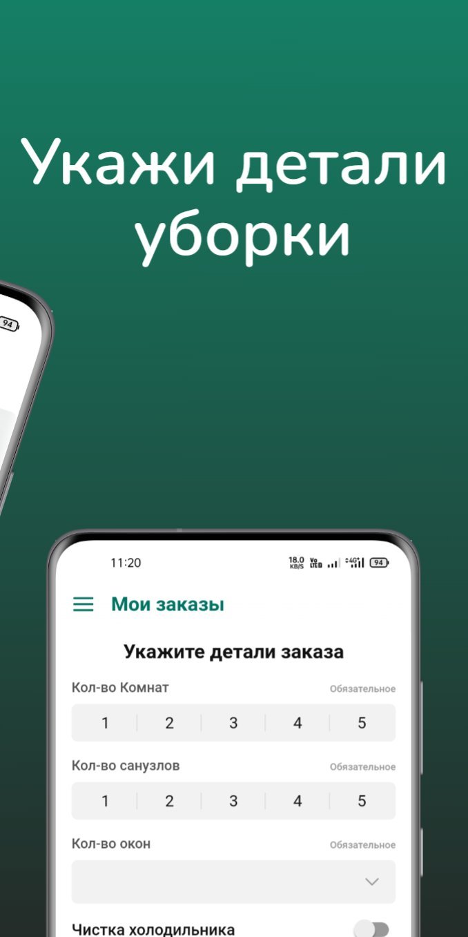 Сделать приложения клининга для клиента, администратора и исполнителя. С Выбором даты, времени и места уборки.
