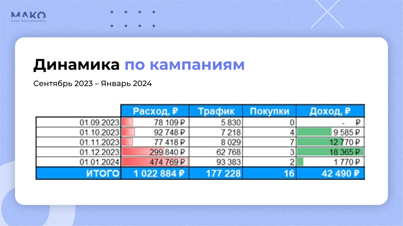 Мы увидели, что некоторые кампании на поиске и в РСЯ приводят исключительно мусорный трафик. Были среди них такие, что за полгода потратили по 1 млн руб. и не принесли ни одной продажи!