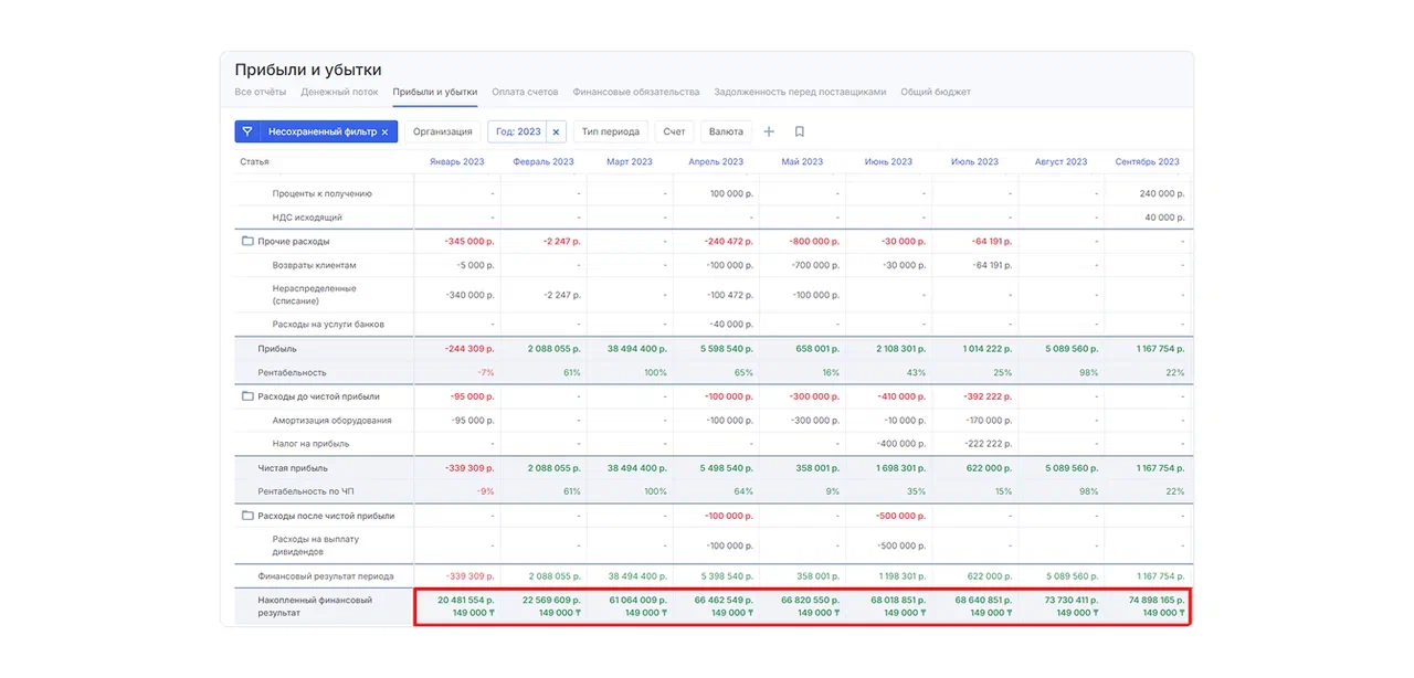 ● Видеть общий финансовый результат бизнеса в удобной и понятной форме.