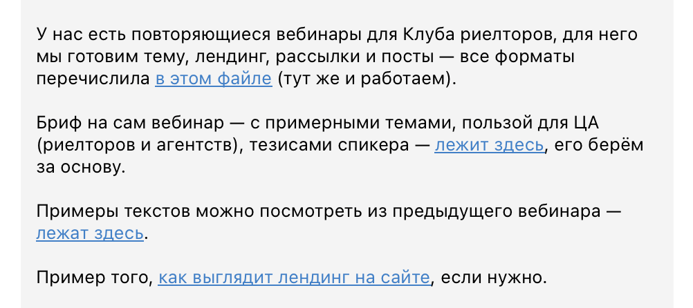 Со временем мы взяли на себя ещё больше работы. Чтобы сдавать всё в срок и оперативно вносить правки, мы расширили команду до трёх авторов и редактора. Все они были на связи в рабочее время и отвечали клиенту в течение получаса.