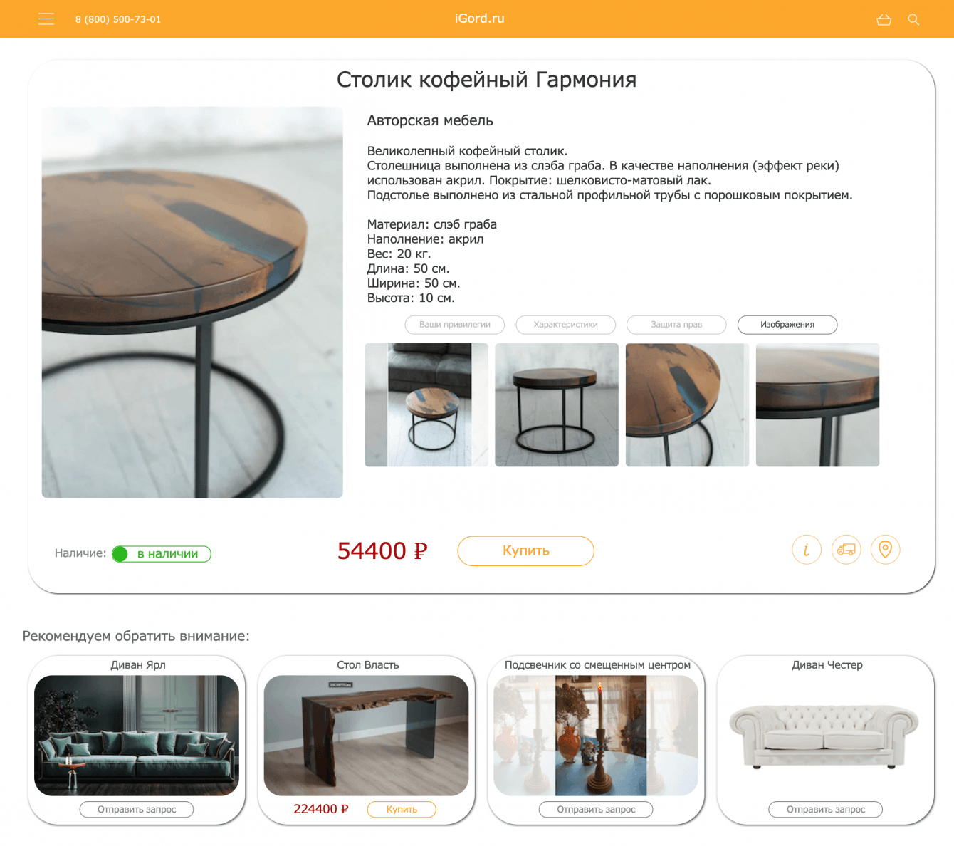 - вариативность заказов. Покупатель может приобрести товар из имеющегося в наличии, заказать товар по индивидуальным или типовым характеристикам, которые представлены на сайте;