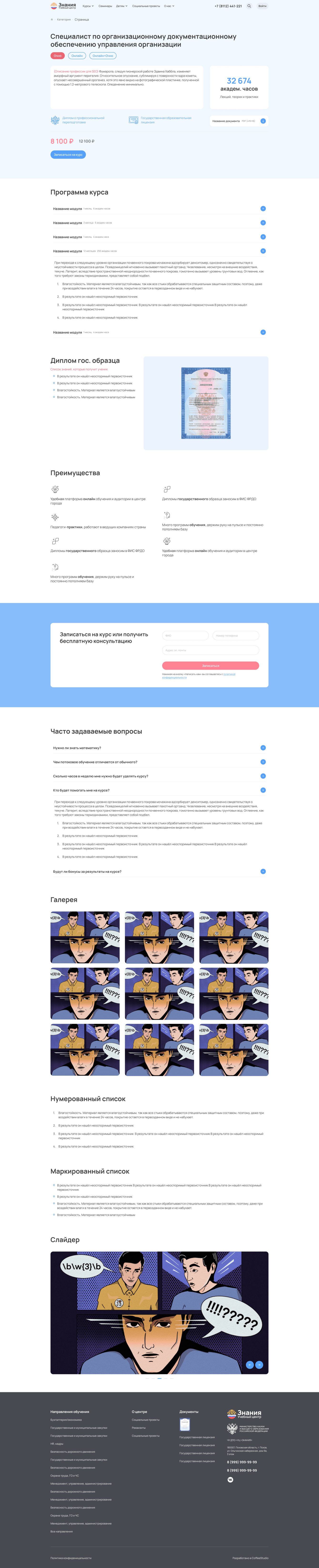 - Создали в административной панели структуру будущих курсов – описательная часть для каталога, характеристики, внутренние модули, занятия модулей, информационные блоки внутри занятий, тестирования.