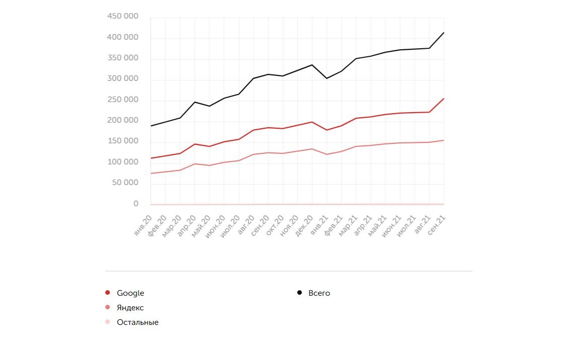 Продвижение увеличило долю трафика из поисковой выдачи Google и «Яндекс». Сайт стал заметнее в регионах России, все больше клиентов стало обращаться к компании из небольших городов страны. Доля целевого трафика из регионов удвоилась несмотря на снижение рыночного спроса из-за последствий пандемии 2021 года.