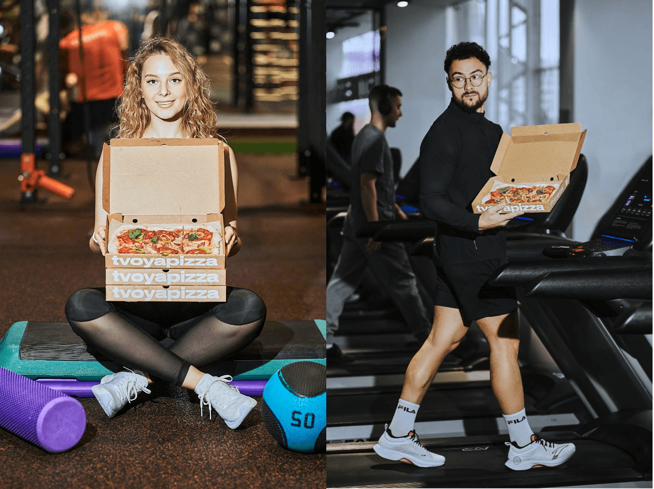 На контрасте с привычной ЗОЖ-коммуникацией других фитнес-клубов, мы призвали пользователей закрывать углеводное окно иначе и побаловать себя самым популярным «нездоровым» блюдом — пиццей. Так родилась коллаборация с TVOЯ Pizza.