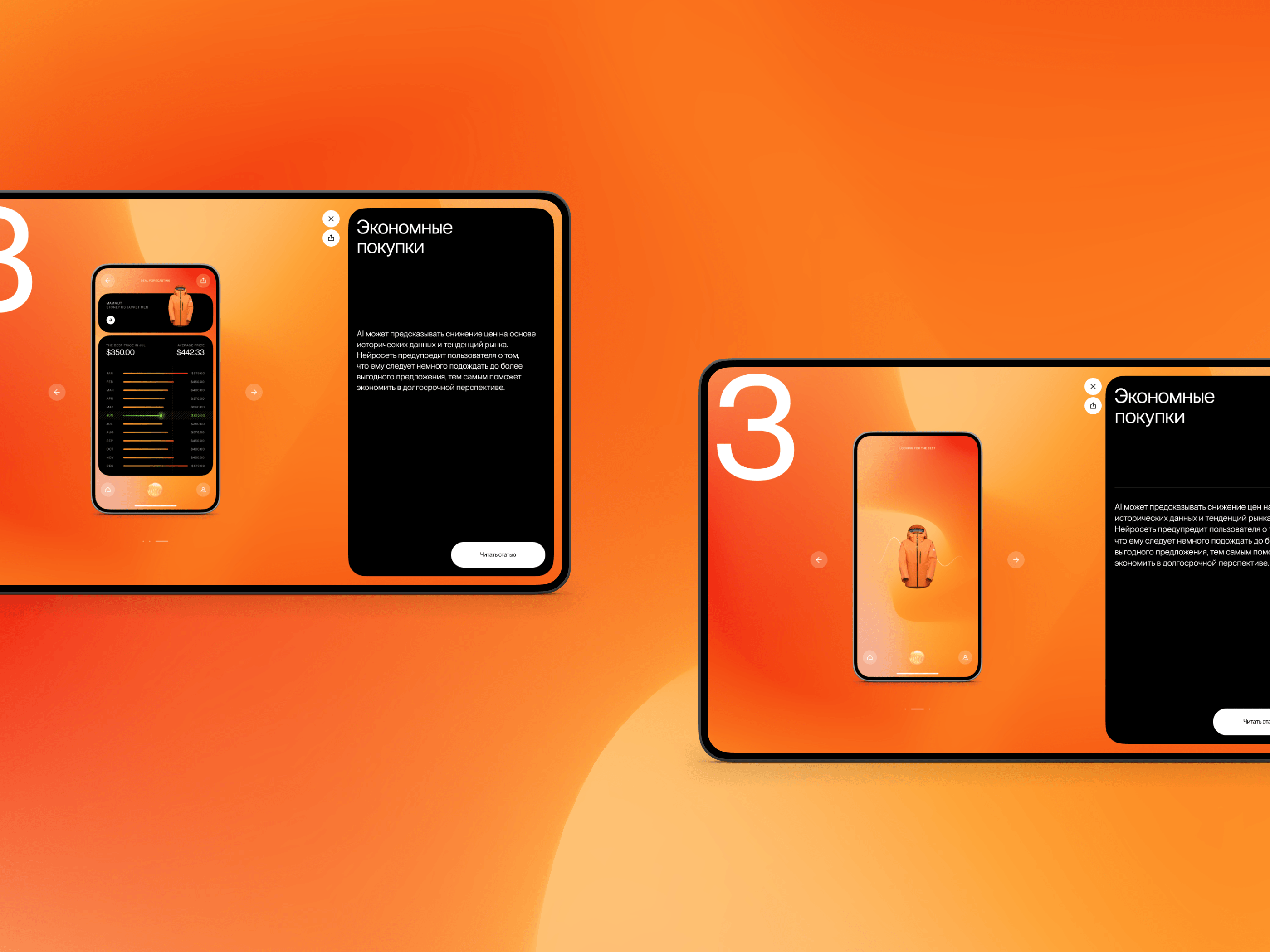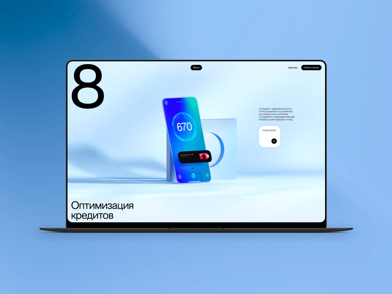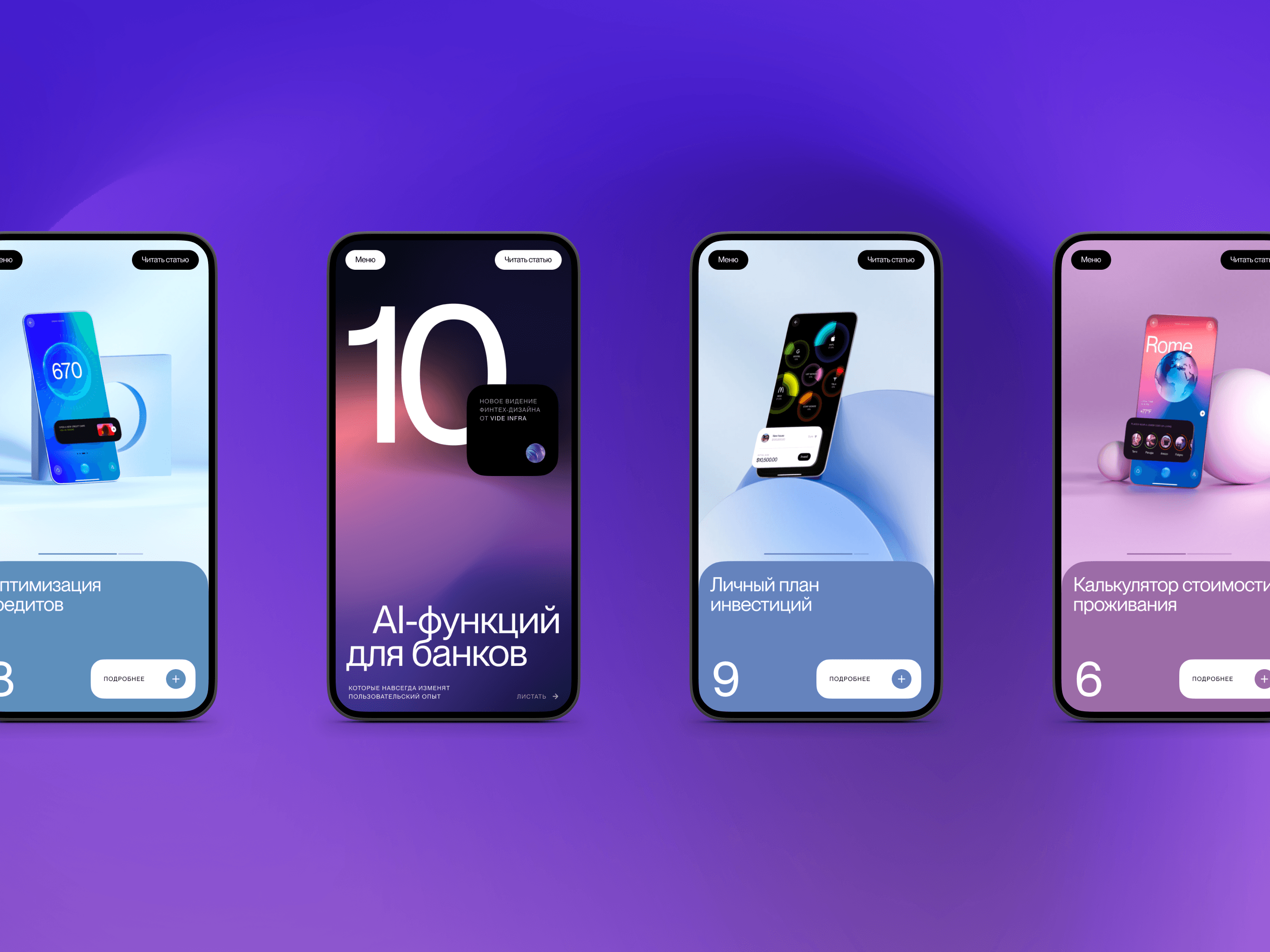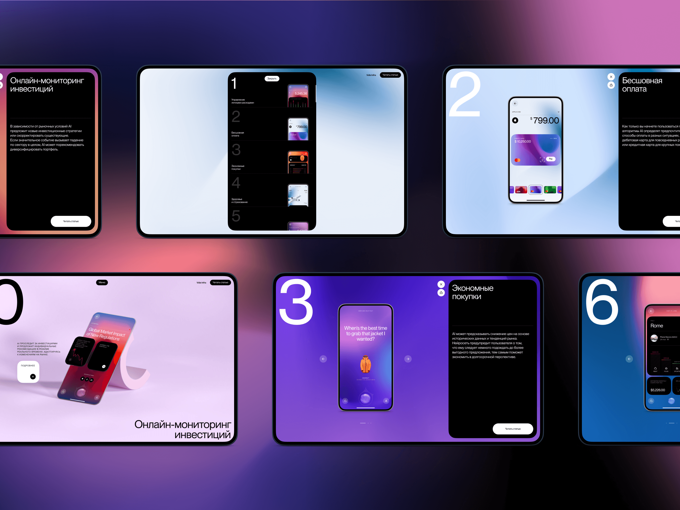 2. Для каждой разработали дизайн интерфейса, в котором нейросети переплетаются с актуальными трендами финтеха.