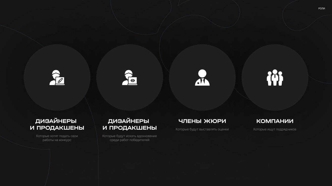 В первом варианте мы сделали акцент именно на визуальном представлении и добавили креативных элементов. В итоге сайт был похож на промо-страницу конкурса, которую мы запустили до. Проанализировали и решили полностью переделать. Команда дизайна подобрала референсы, затем мы утвердили дизайн-концепцию и приступили к разработке.