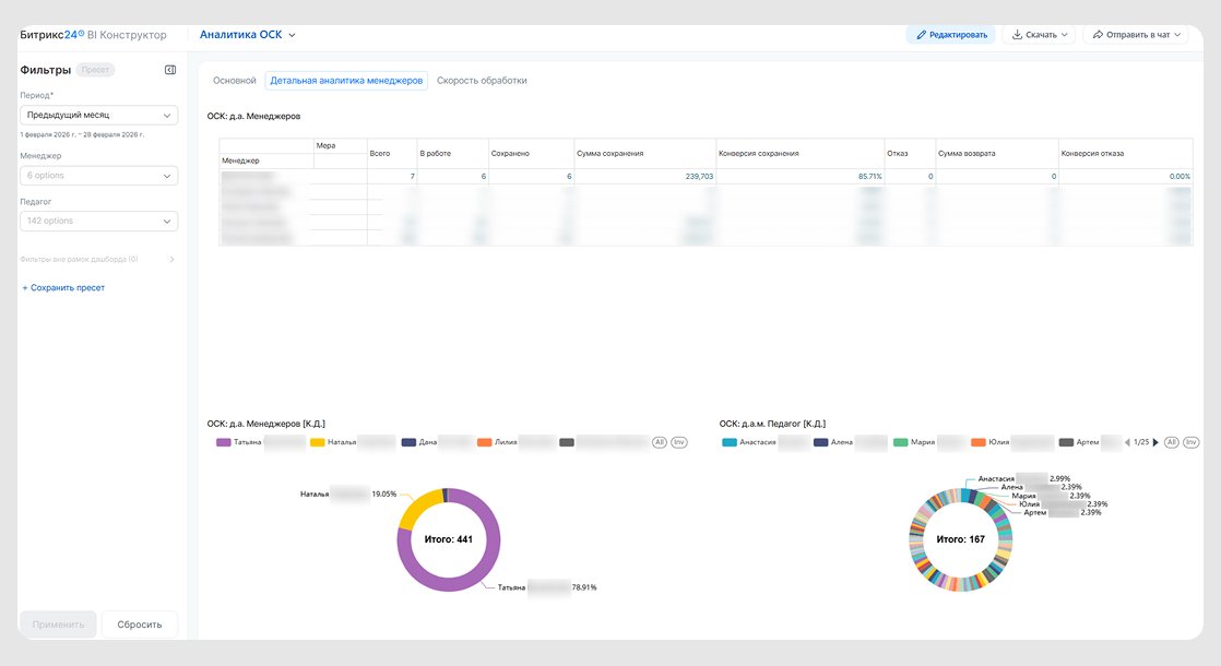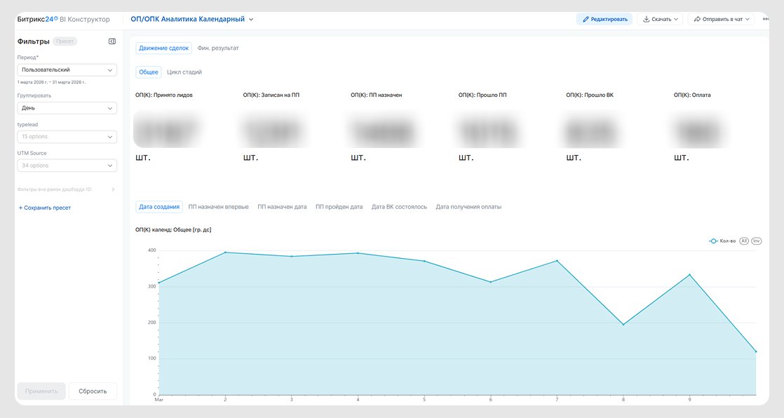 Мы внедрили BI-конструктор, в котором собраны ключевые показатели бизнеса. Настроили удобные дашборды: