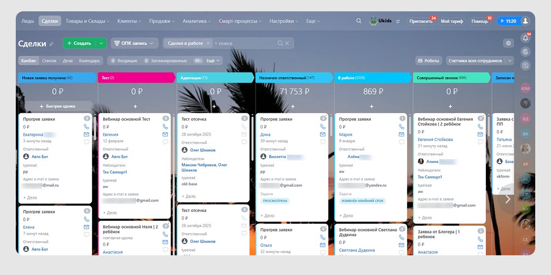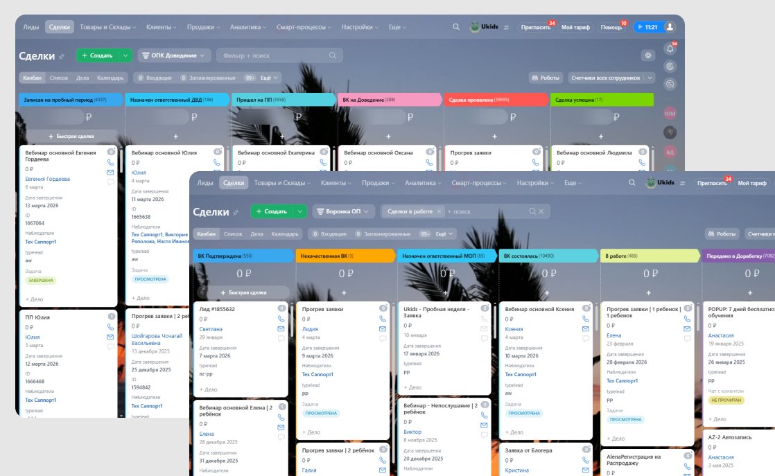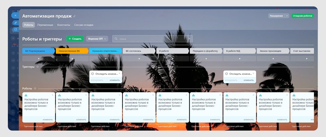 Также были переработаны и оптимизированы воронки продаж, внедрены умные сценарии для автоматического перемещения сделок, настроены задачи менеджерам и руководителям на ключевых этапах работы с клиентом.