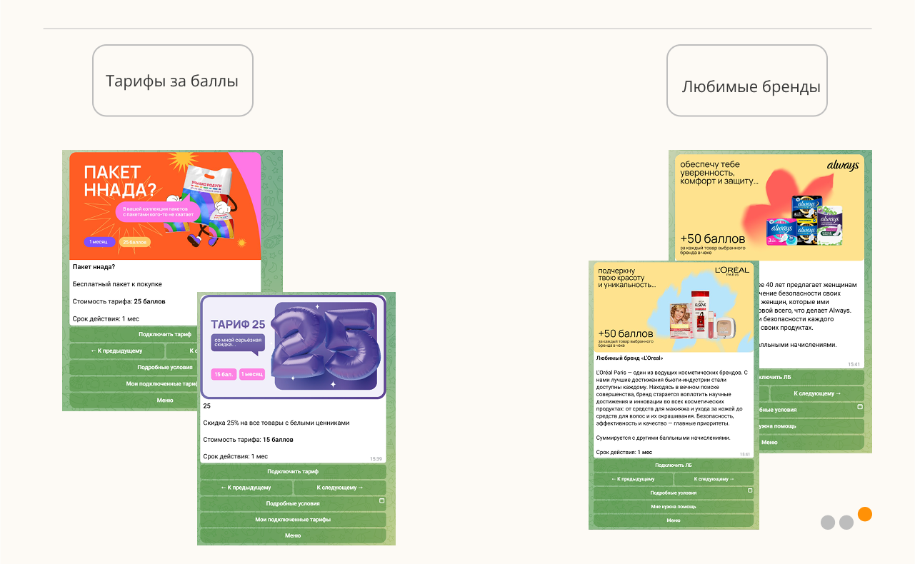 Часть клиентов предпочитает пользоваться Программой лояльности в чат-боте → дали им простую альтернативу мобильному приложению, в которой есть все основные возможности программы лояльности.