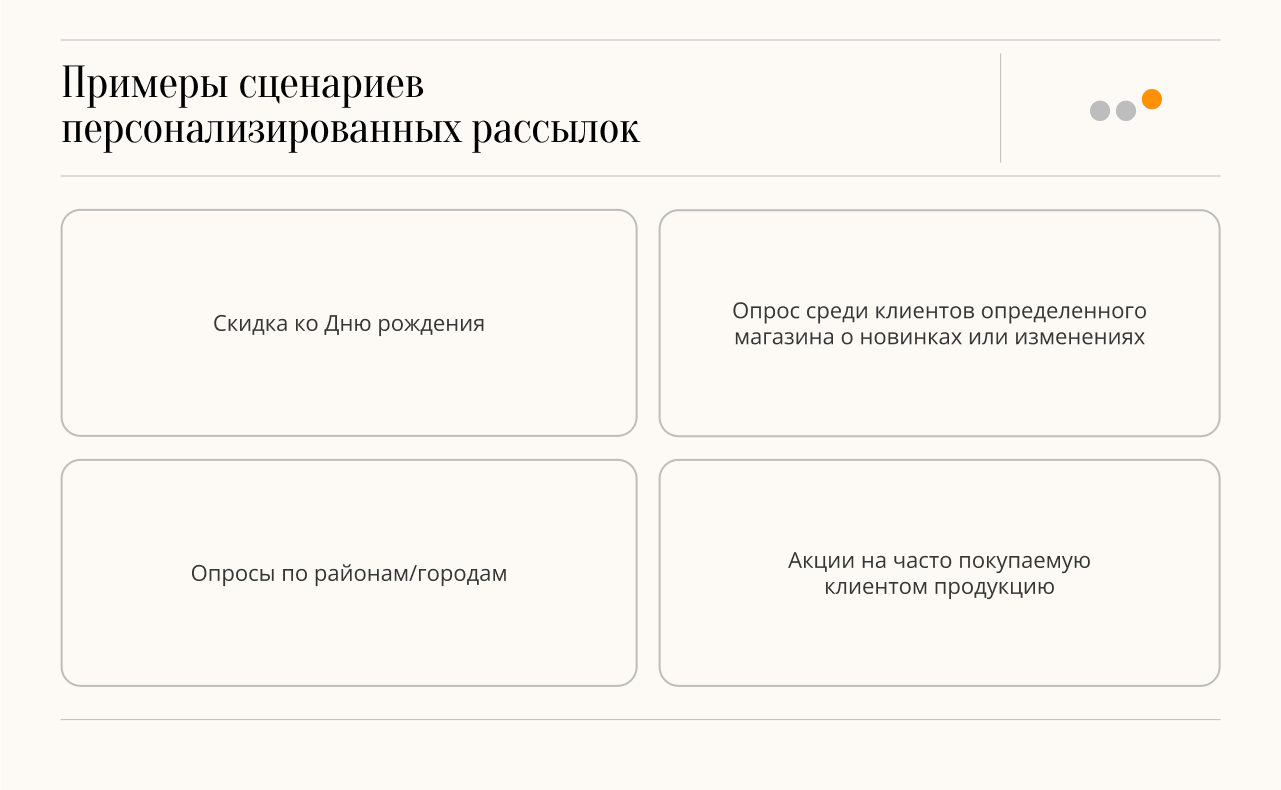 Такой подход к рассылке работает лучше, чем поток разнородного и беспорядочного контента, который люди не хотят потреблять: акции, скидки, опросы, поздравления с праздниками и прочее.