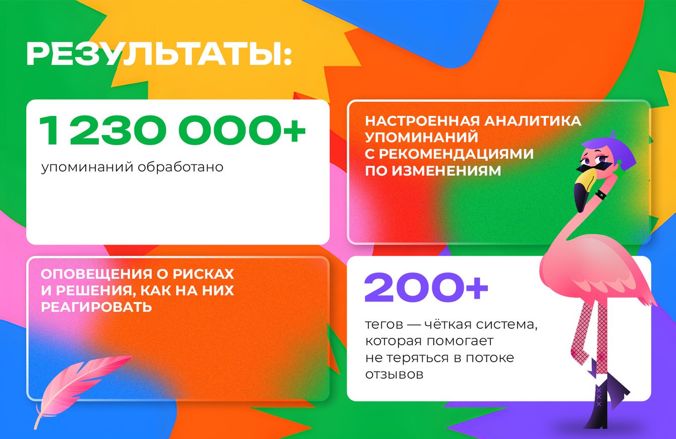 Все данные, полученные при обработке упоминаний, влияли на реальные решения — от изменения процессов до реакции на инциденты. Мы сделали акцент на качество: ввели несколько уровней проверки и обучили команду, чтобы все теги ставились корректно.