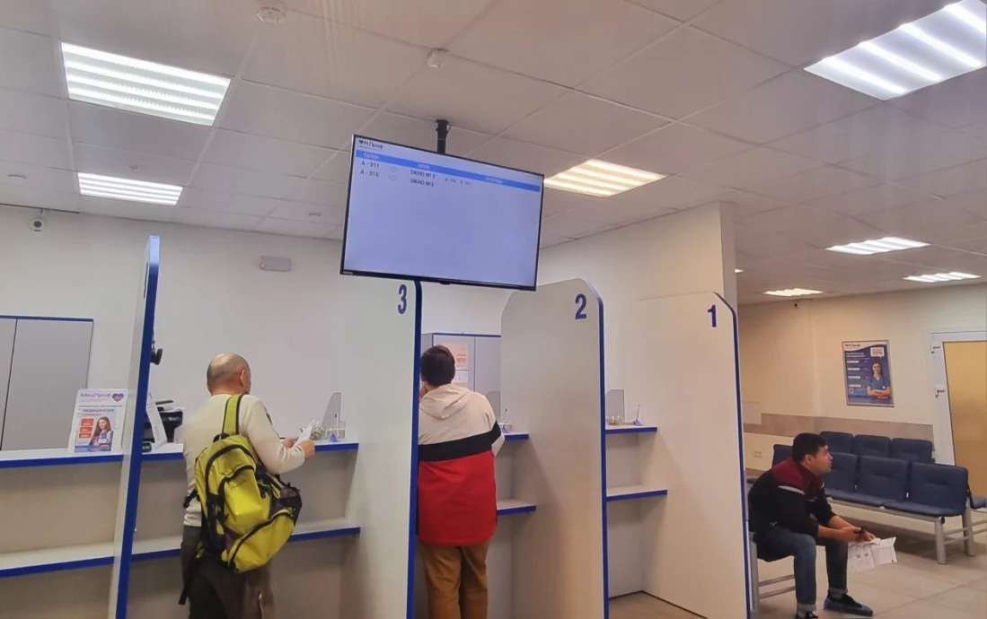 Через терминал посетитель выбирает нужную опцию, получает талон и с ним идет в регистратуру