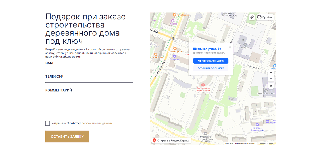 Реализована интерактивная карта, чтобы пользователям было проще найти местоположение офиса: